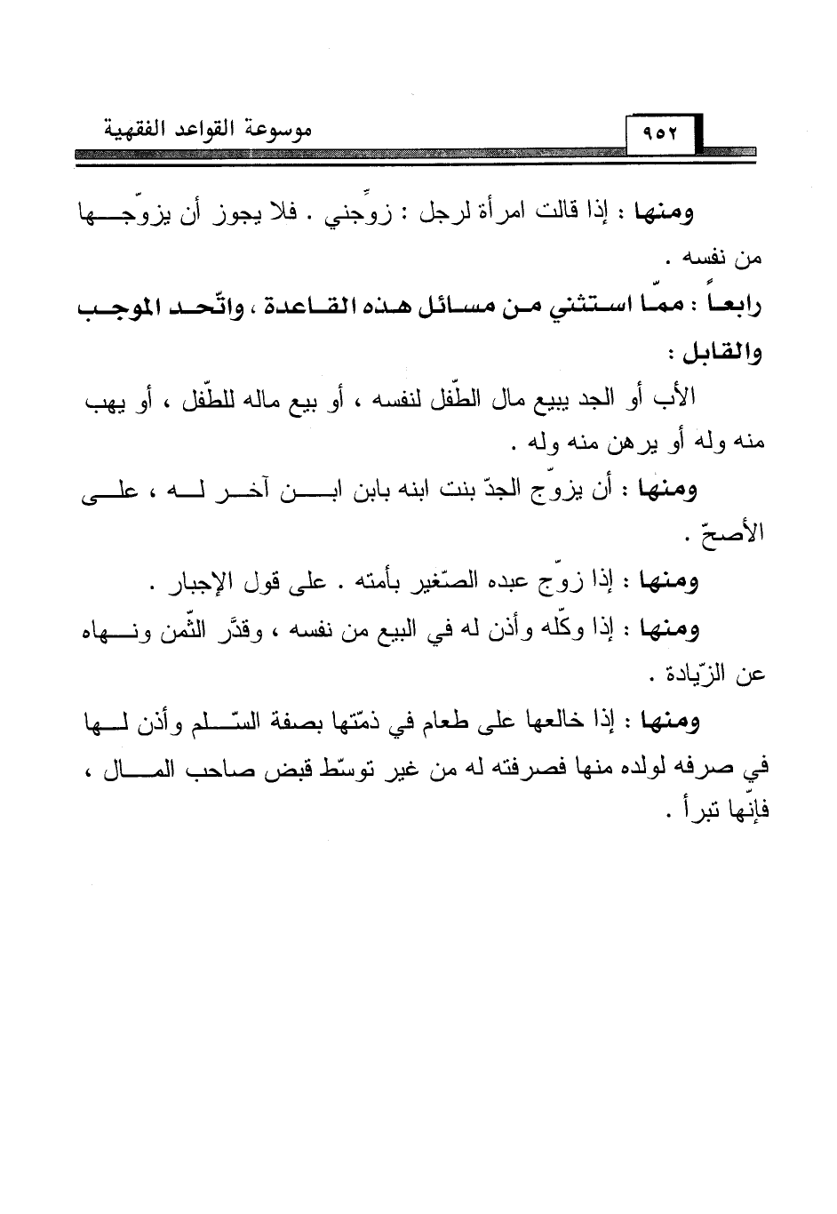 رابعاً: ممّا استثني من مسائل هذه القاعدة، واتّحد الموجب والقابل: