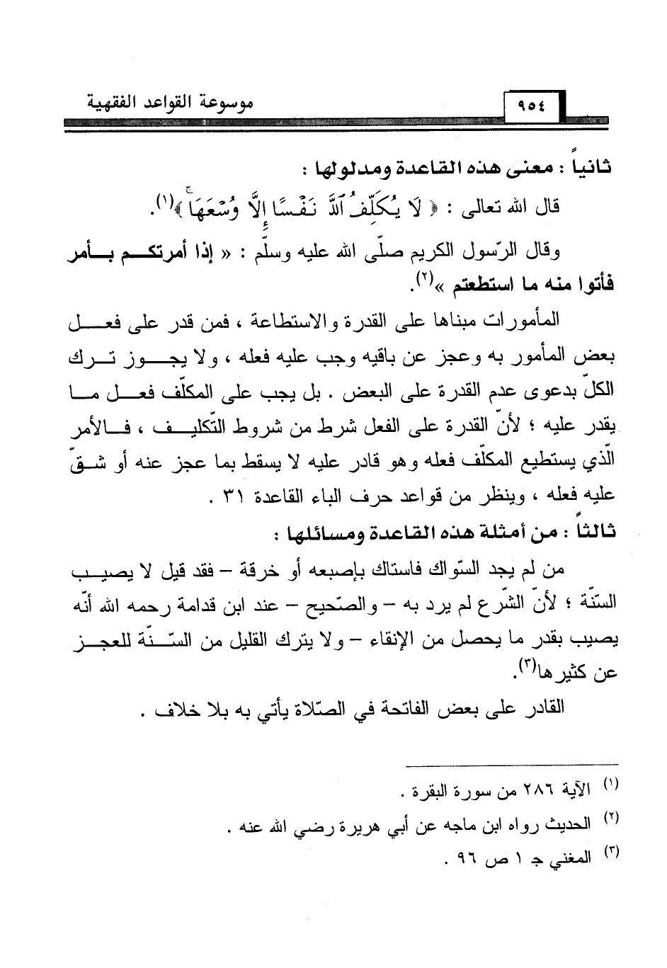وقال الرّسول الكريم صلّى الله عليه وسلّم: "إذا أمرتكم بأمر فأتوا منه ما استطعتم" (¬2).