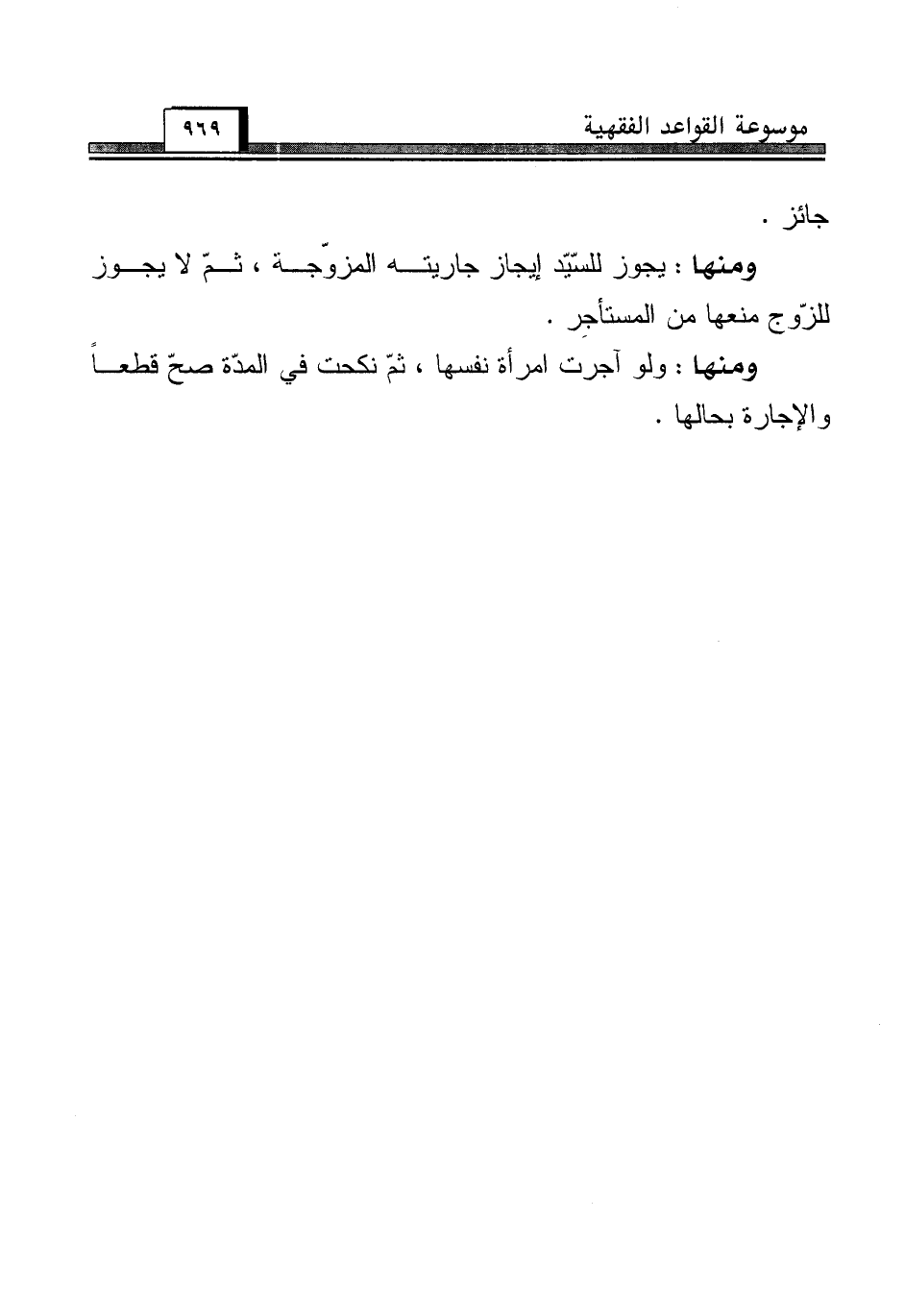 ومنها: يجوز للسّيّد إيجاز جاريته المزوّجة، ثمّ لا يجوز للزّوج منعها من المستأجِر.
