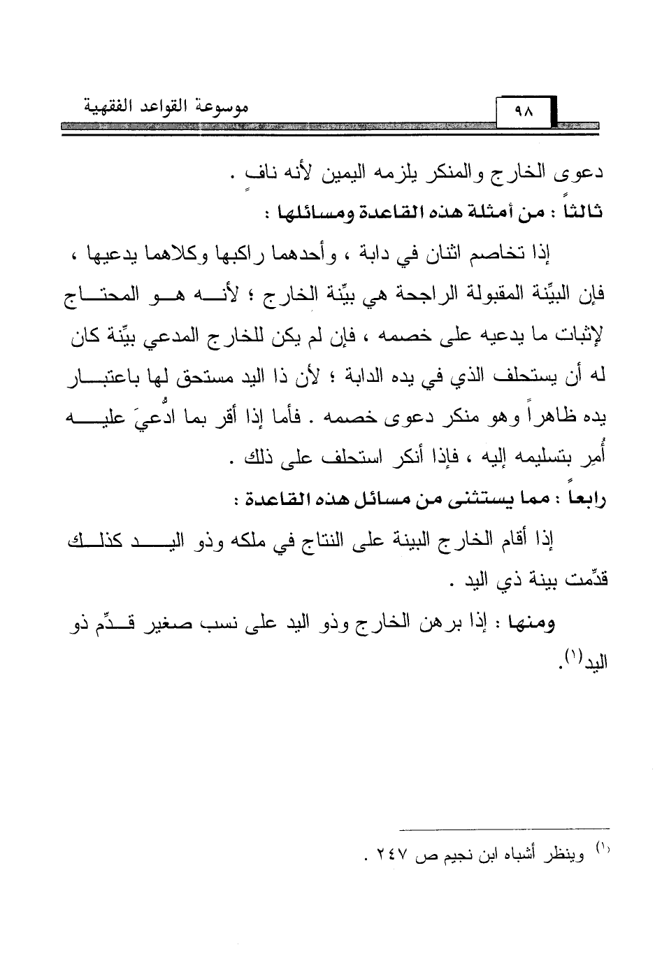 رابعاً: مما يستثنى من مسائل هذه القاعدة: