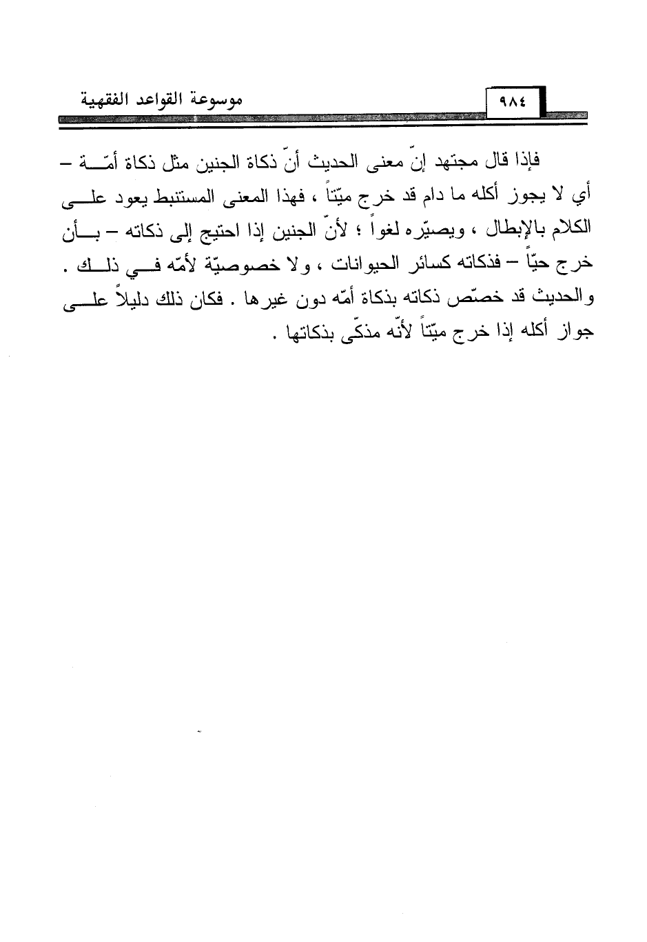 فإذا قال مجتهد إنّ معنى الحديث أنّ ذكاة الجنين مثل ذكاة أمّة - أي لا يجوز أكله ما دام قد خرج ميّتاً، فهذا المعنى المستنبط يعود على الكلام بالإبطال، ويصيّره لغواً؛ لأنّ الجنين إذا احتيج إلى ذكاته - بأن خرج حيّاً - فذكاته كسائر الحيوانات، ولا خصوصيّة لأمّه في ذلك. والحديث قد خصّص ذكاته بذكاة أمّه دون غيرها. فكان ذلك دليلاً على جواز أكله إذا خرج ميّتاً لأنّه مذكّى بذكاتها.