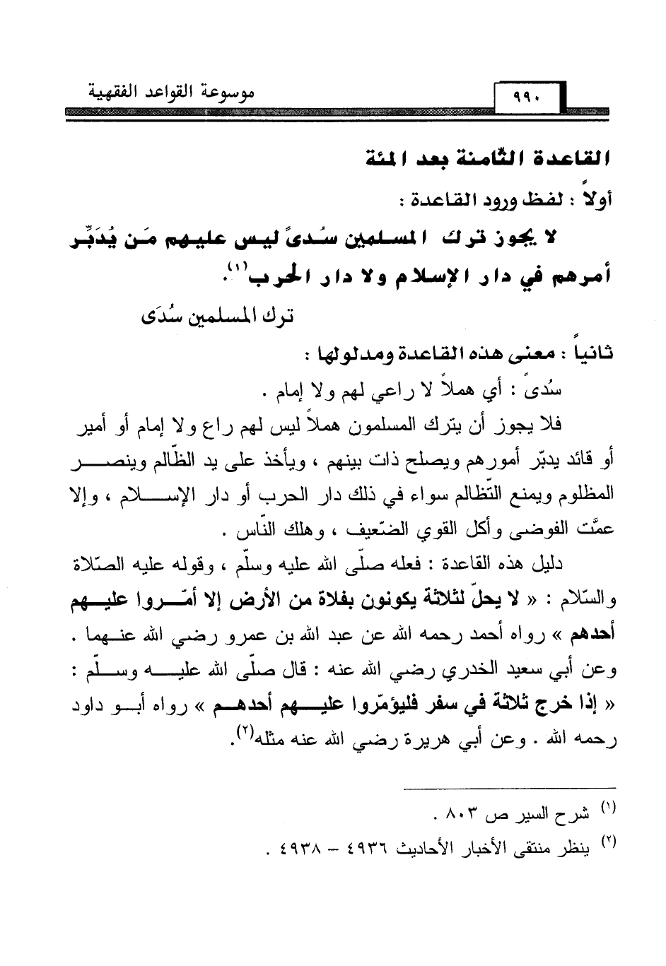 القاعدة الثّامنة بعد المئة [ترك المسلمين سُدَى]