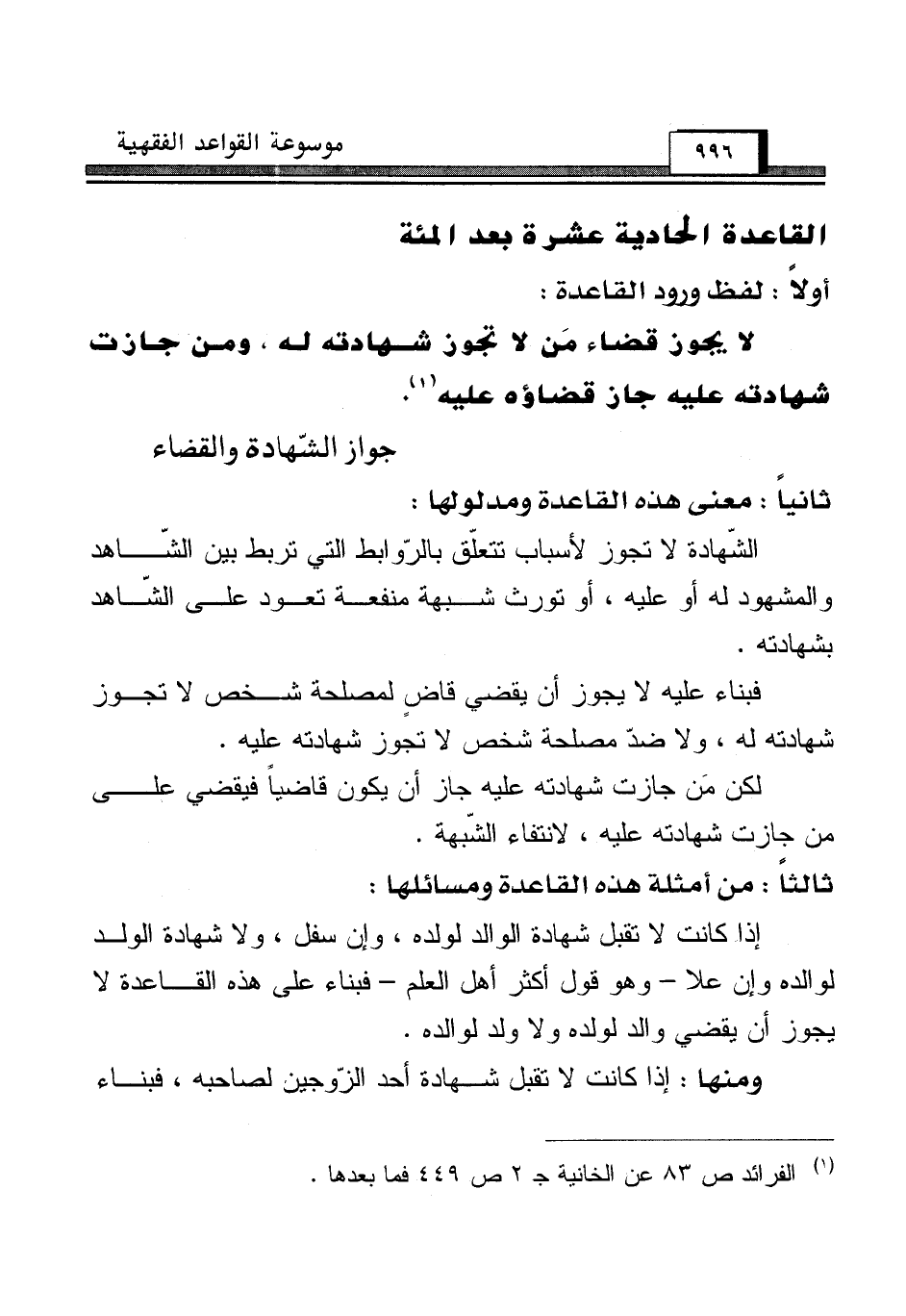 القاعدة الحادية عشرة بعد المئة [جواز الشّهادة والقضاء]