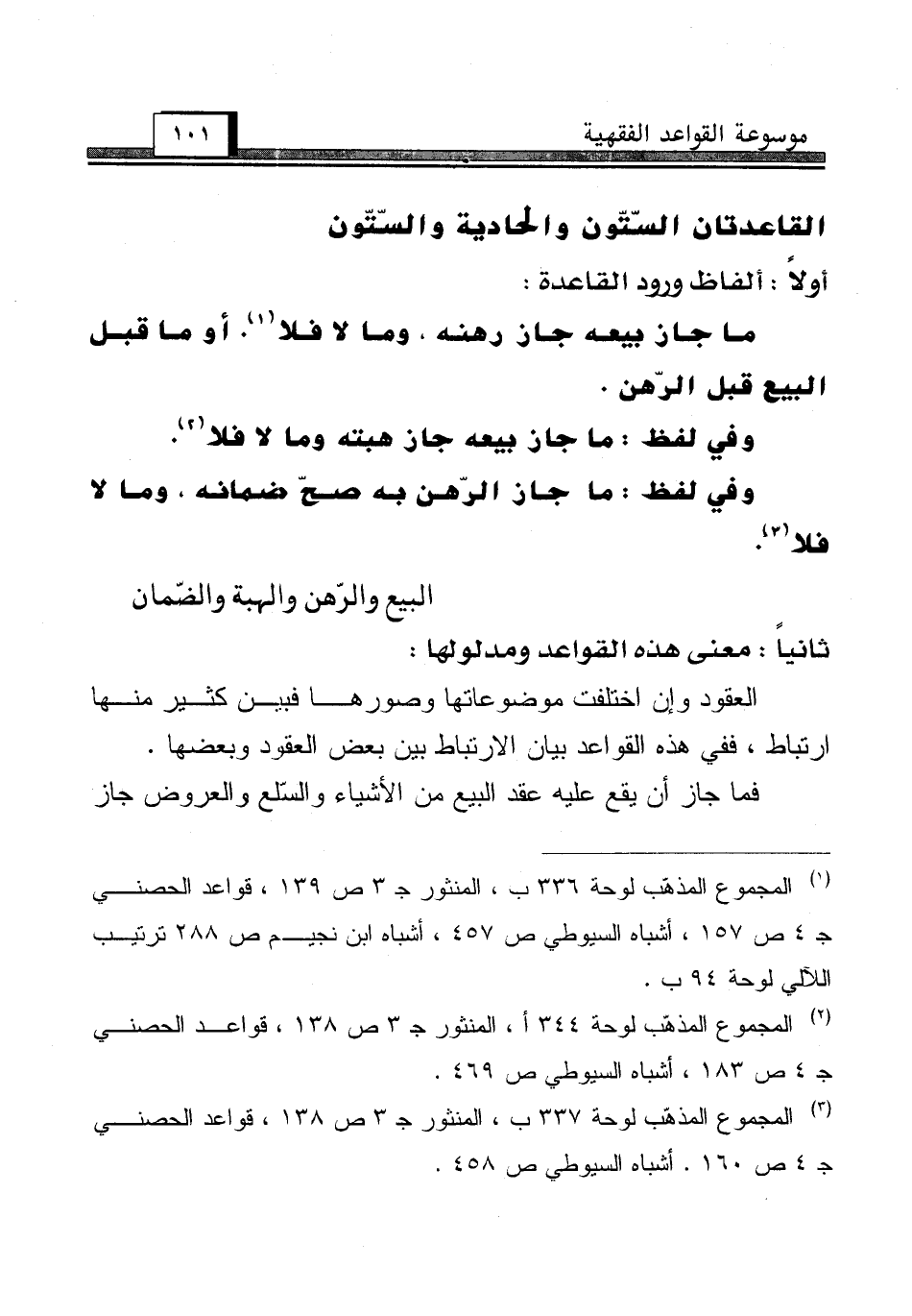 (¬1) المجموع المذهّب لوحة 336 ب، المنثور جـ 3 ص 139، قواعد الحصني جـ 4 ص 157، أشباه السيوطي ص 457، أشباه ابن نجيم ص 288 ترتيب اللآلي لوحة 94 ب.