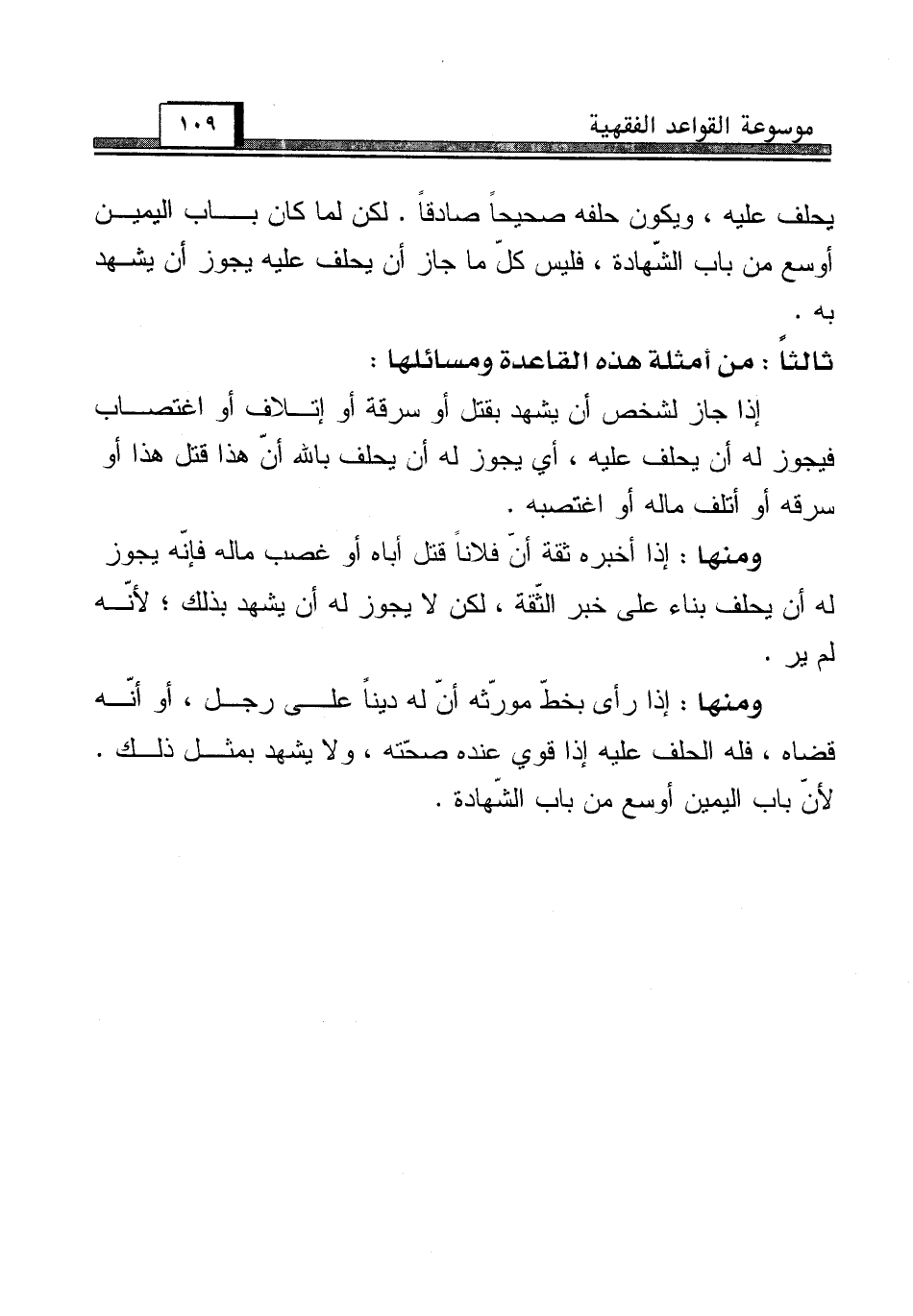 ثالثاً: من أمثلة هذه القاعدة ومسائلها: