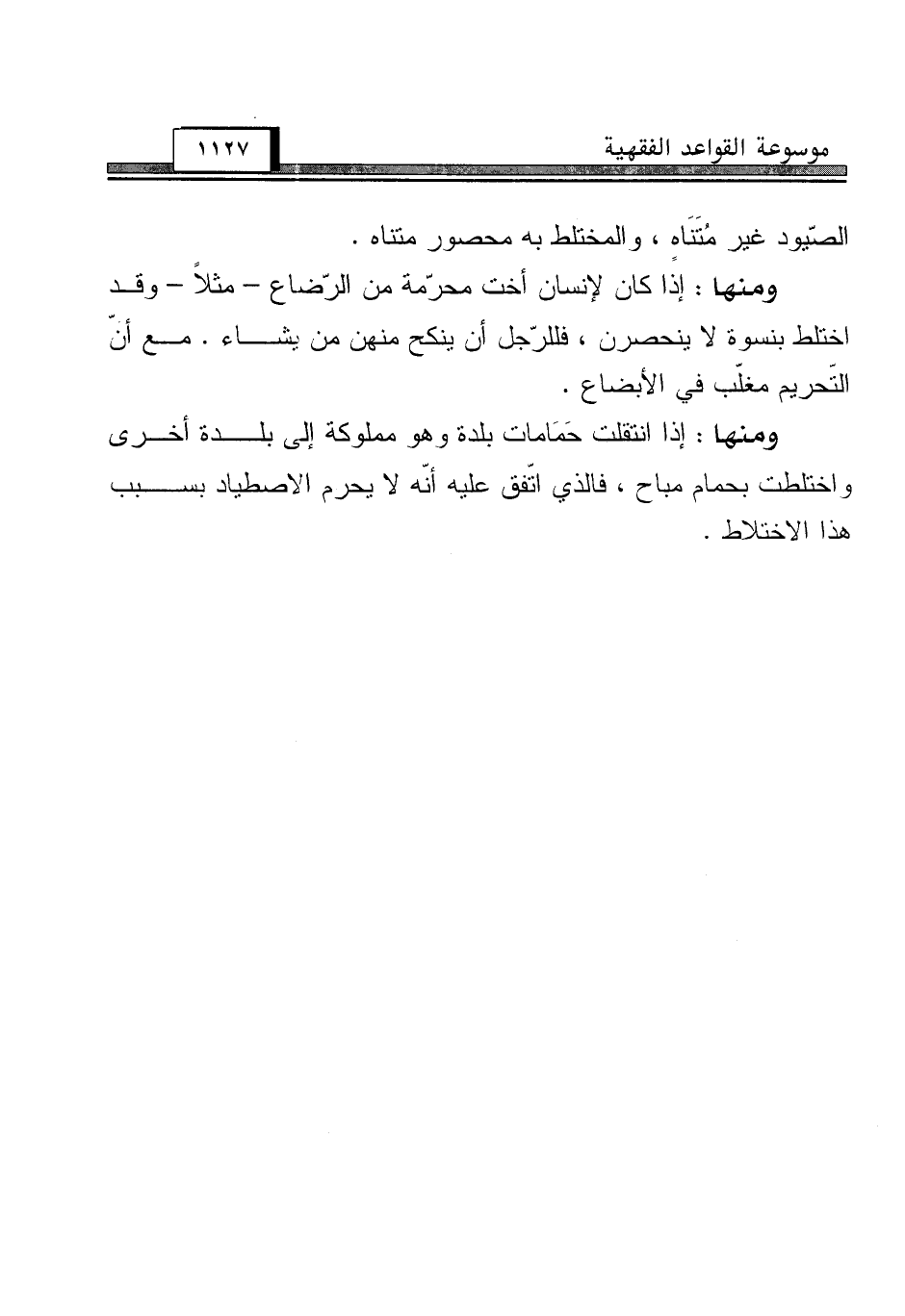 ومنها: إذا كان لإنسان أخت محرّمة من الرّضاع - مثلاً - وقد اختلط بنسوة لا ينحصرن، فللرّجل أن ينكح منهن من يشاء. مع أنّ التّحريم مغلّب في الأبضاع.
