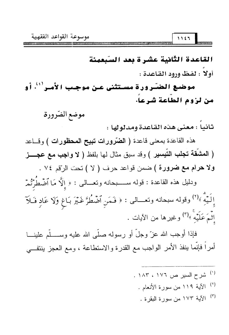 ودليل هذه القاعدة: قوله سبحانه وتعالى: {إِلَّا مَا اضْطُرِرْتُمْ إِلَيْهِ} (¬2) وقوله سبحانه وتعالى: {فَمَنِ اضْطُرَّ غَيْرَ بَاغٍ وَلَا عَادٍ فَلَا إِثْمَ عَلَيْهِ} (¬3) وغيرها من الآيات.