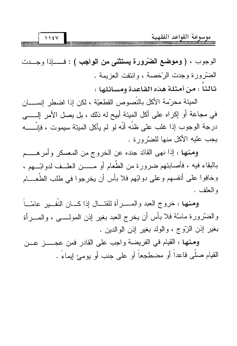 الوجوب، (وموضع الضّرورة يستثنى من الواجب): فإذا وجدت الضّرورة وجدت الرّخصة، وانتفت العزيمة.