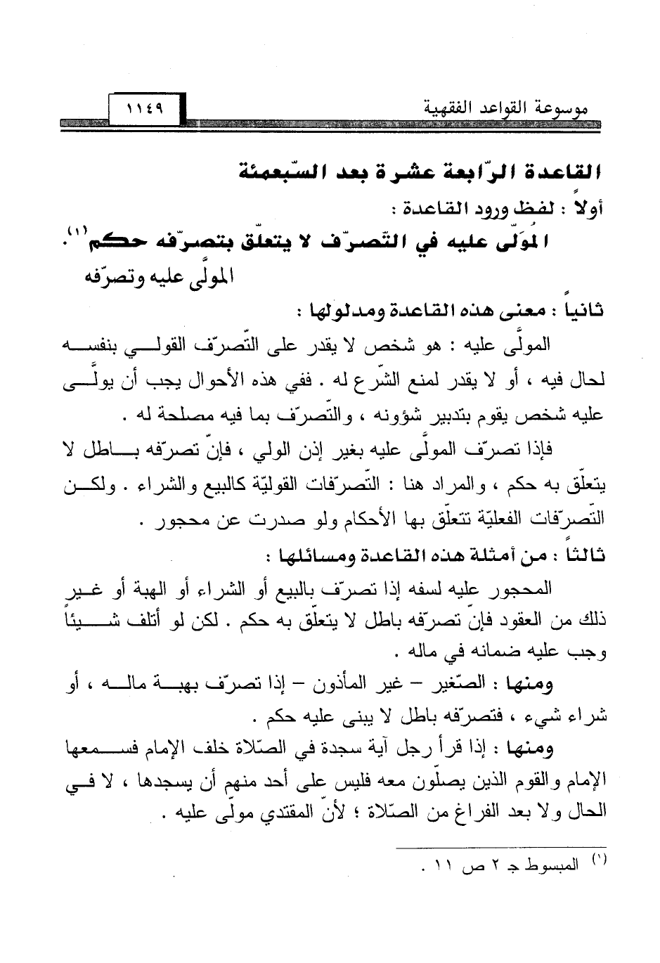 القاعدة الرّابعة عشرة بعد السّبعمئة [المولَّى عليه وتصرّفه]