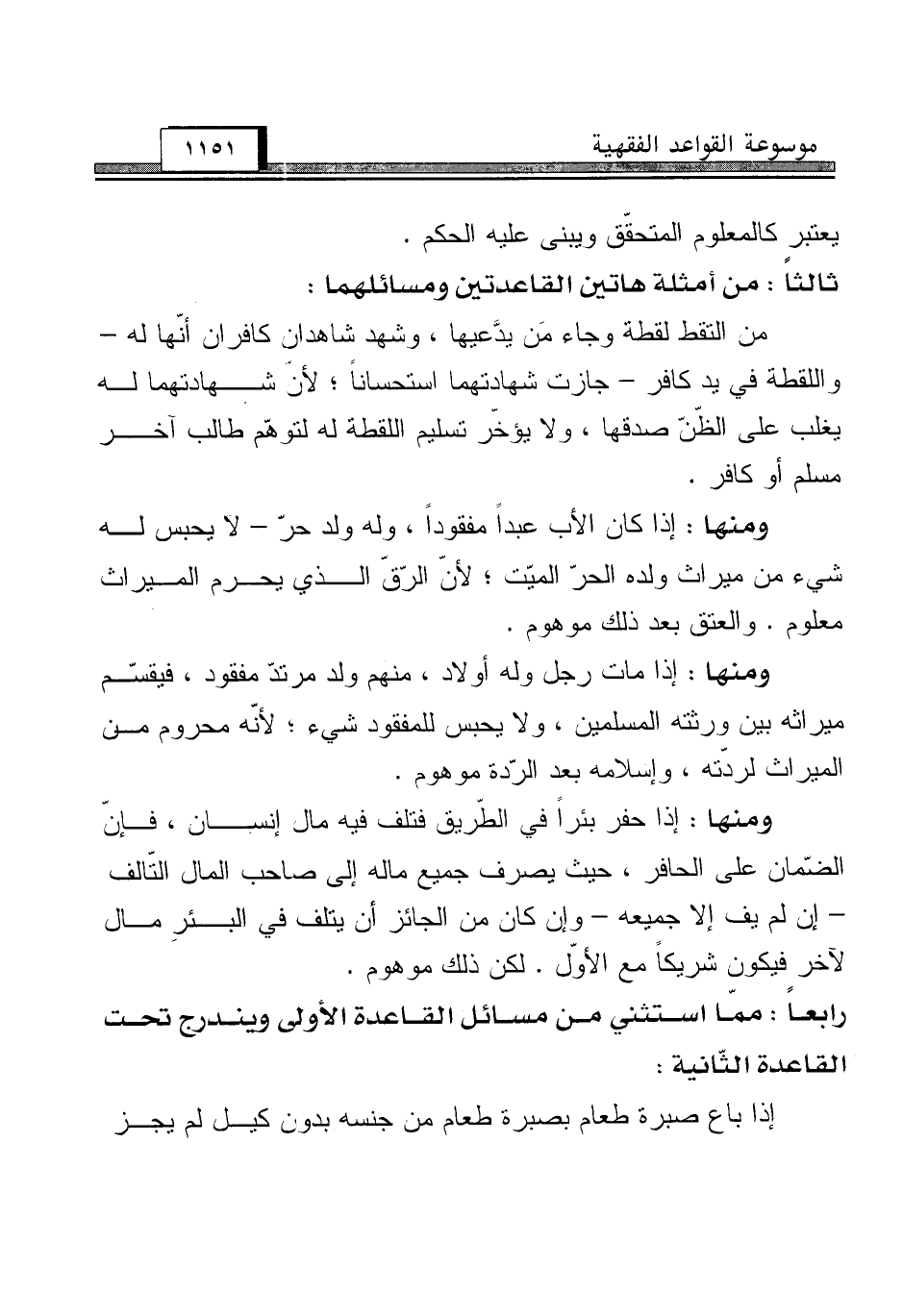 رابعاً: ممّا استثني من مسائل القاعدة الأولى ويندرج تحت القاعدة الثّانية: