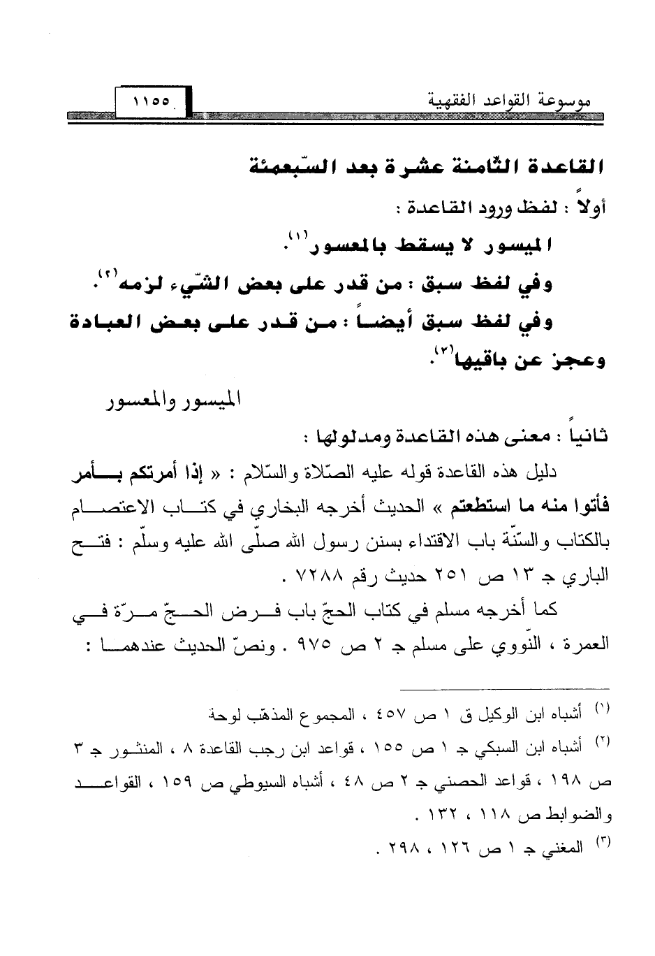 (¬2) أشباه ابن السبكي جـ 1 ص 155، قواعد ابن رجب القاعدة 8، المنثور جـ 3 ص 198، قواعد الحصني جـ 2 ص 48، أشباه السيوطي ص 159، القواعد والضوابط ص 118، 132.