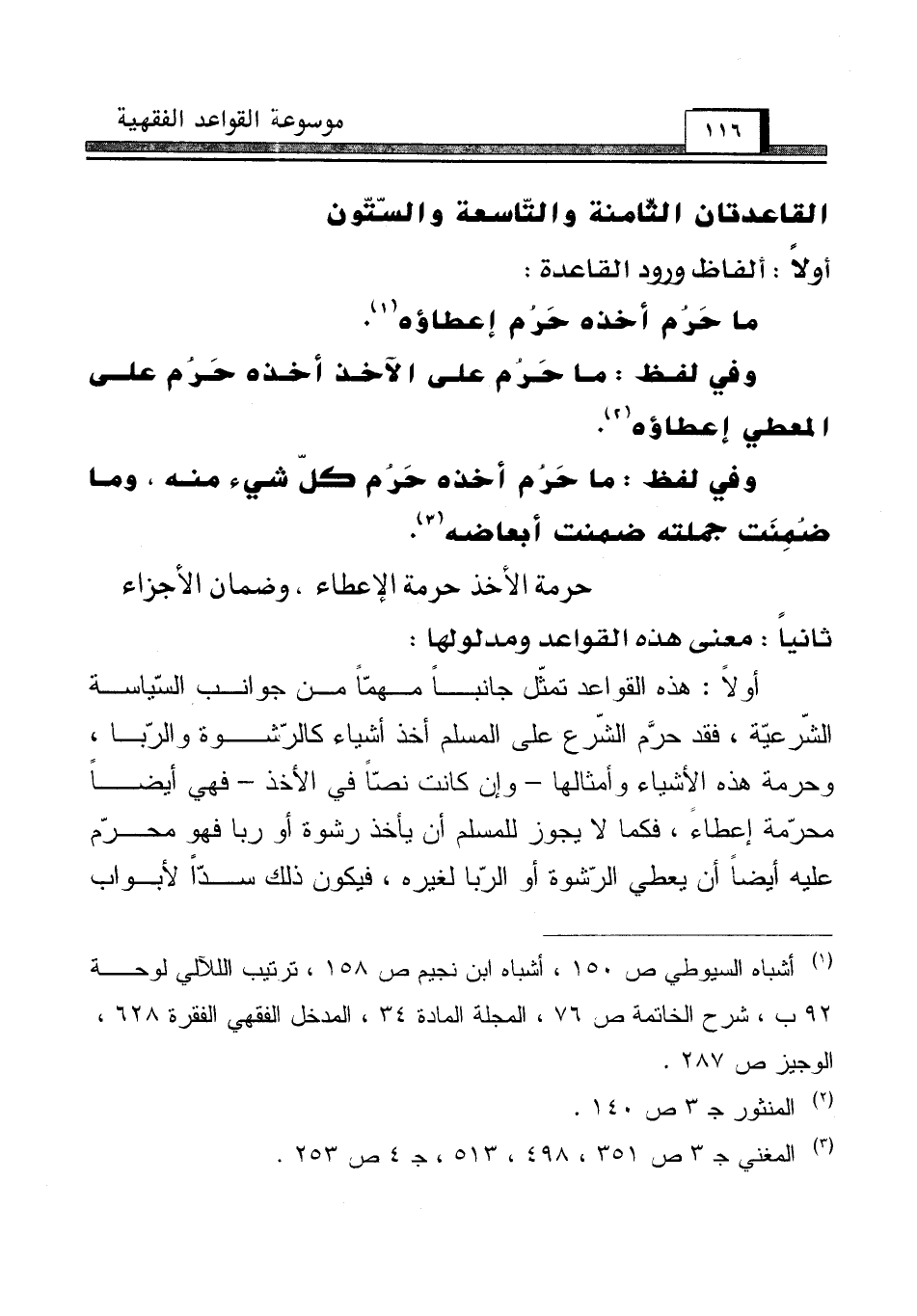 (¬1) أشباه السيوطي ص 150، أشباه ابن نجيم ص 158، ترتيب اللآلي لوحة 92 ب، شرح الخاتمة ص 76، المجلة المادة 34، المدخل الفقهي الفقرة 628، الوجيز ص 287.