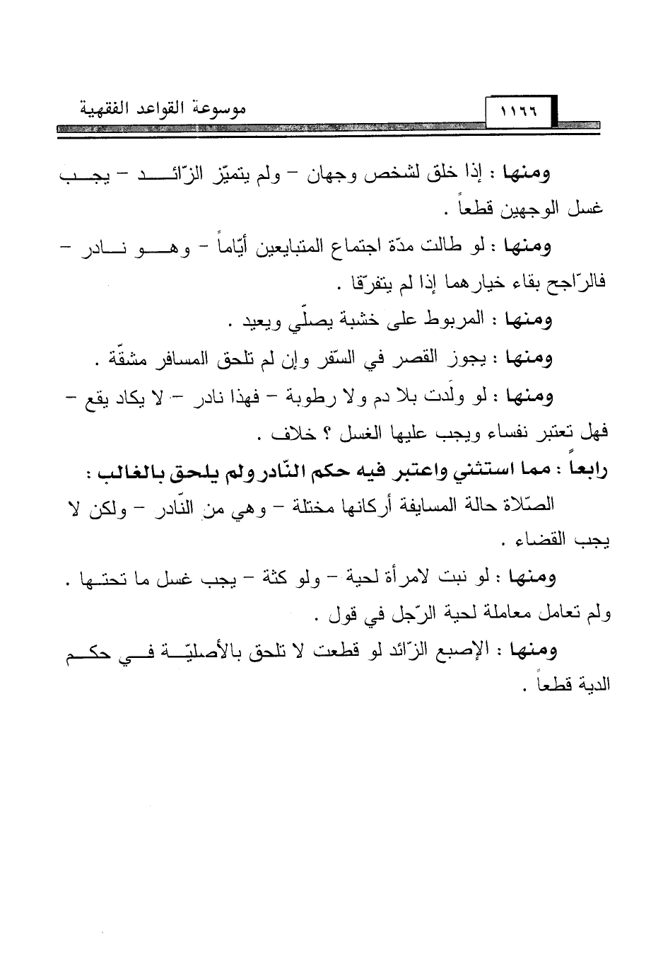 رابعاً: مما استثني واعتبر فيه حكم النّادر ولم يلحق بالغالب:
