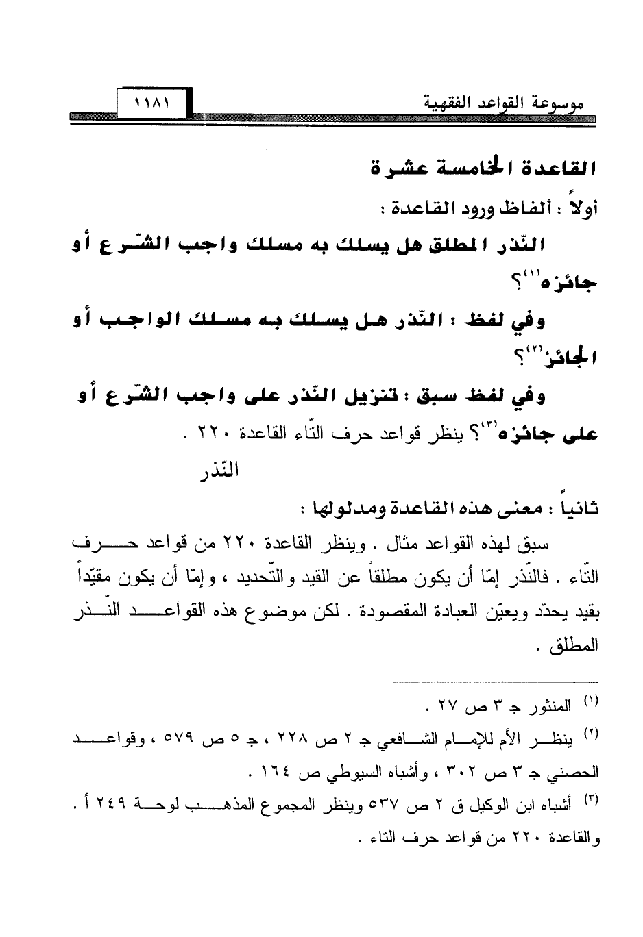(¬2) ينظر الأم للإمام الشافعي جـ 2 ص 228، جـ 5 ص 579، وقواعد الحصني جـ 3 ص 302، وأشباه السيوطي ص 164.