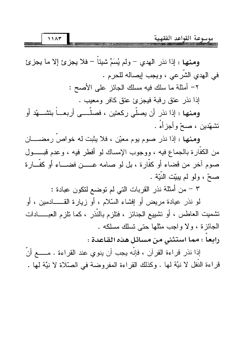 3 - من أمثلة نذر القربات التي لم توضع لتكون عبادة: