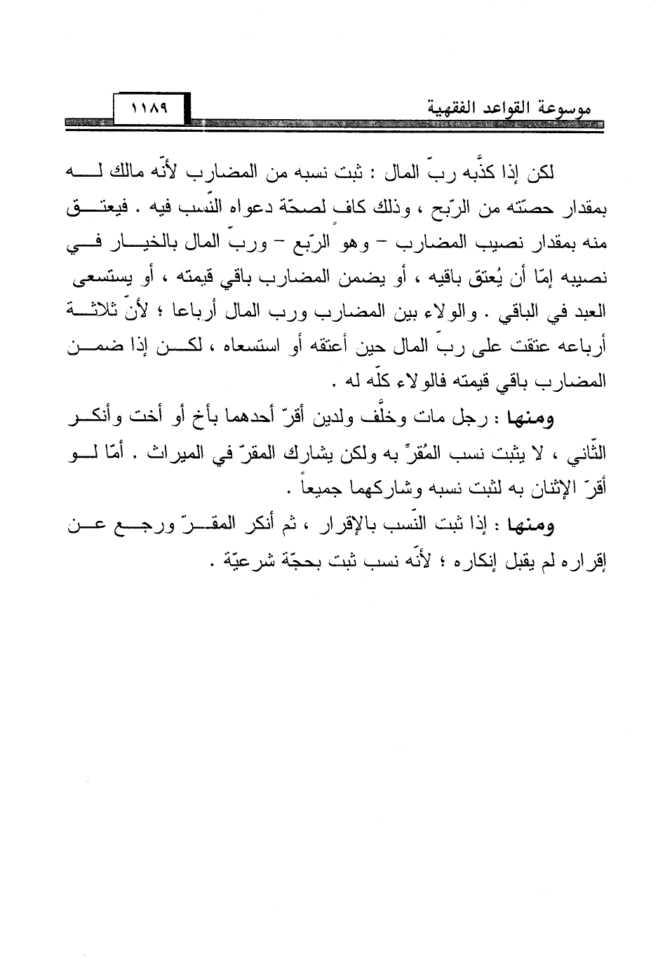 ومنها: رجل مات وخلَّف ولدين أقرّ أحدهما بأخ أو أخت وأنكر الثّاني، لا يثبت نسب المُقرِّ به ولكن يشارك المقرّ في الميراث. أمّا لو أقرّ الإثنان به لثبت نسبه وشاركهما جميعاً.