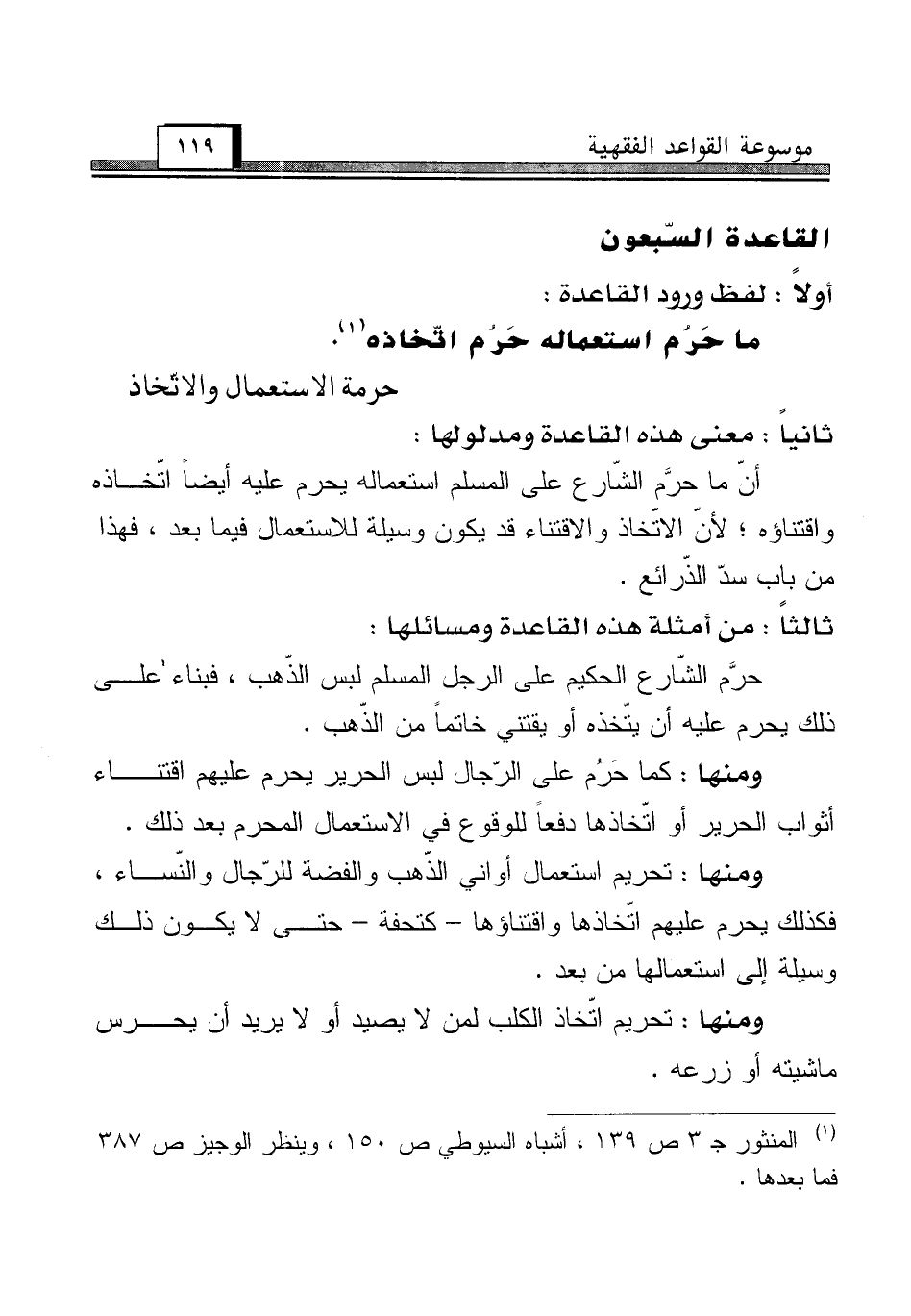 (¬1) المنثور جـ 3 ص 139، أشباه السيوطي ص 150، وينظر الوجيز ص 387 فما بعدها.
