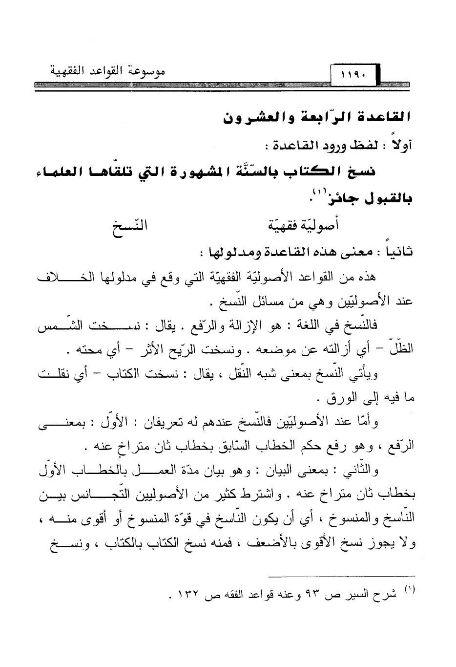 هذه من القواعد الأصوليّة الفقهيّة التي وقع في مدلولها الخلاف عند الأصوليّين وهي من مسائل النّسخ.
