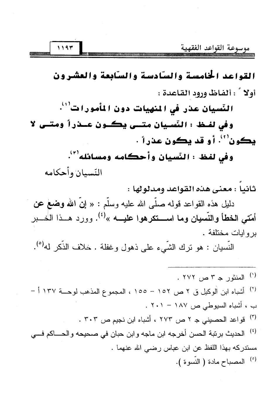 القواعد الخامسة والسّادسة والسّابعة والعشرون [النّسيان وأحكامه]