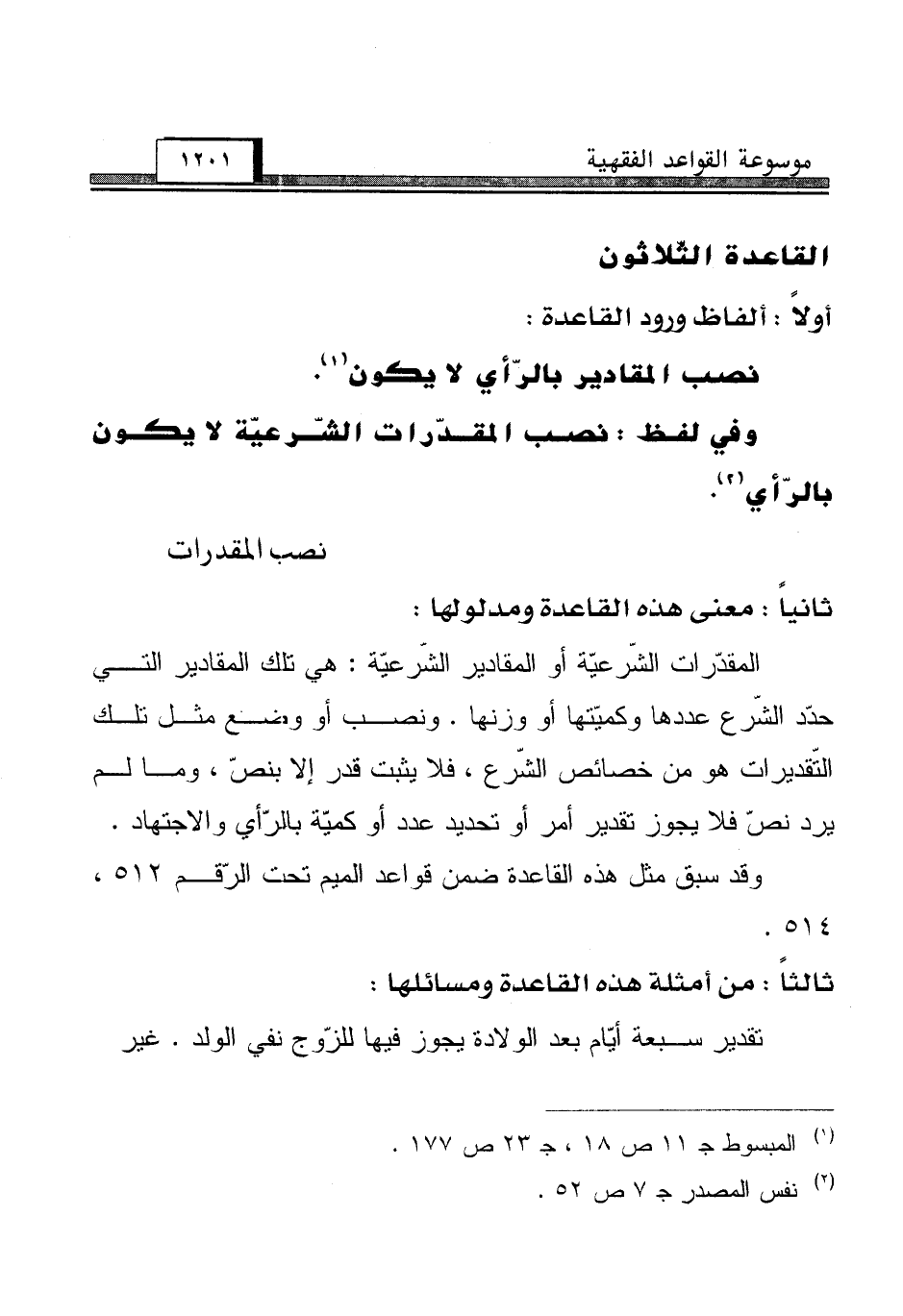 نصب المقادير بالرّأي لا يكون (¬1).