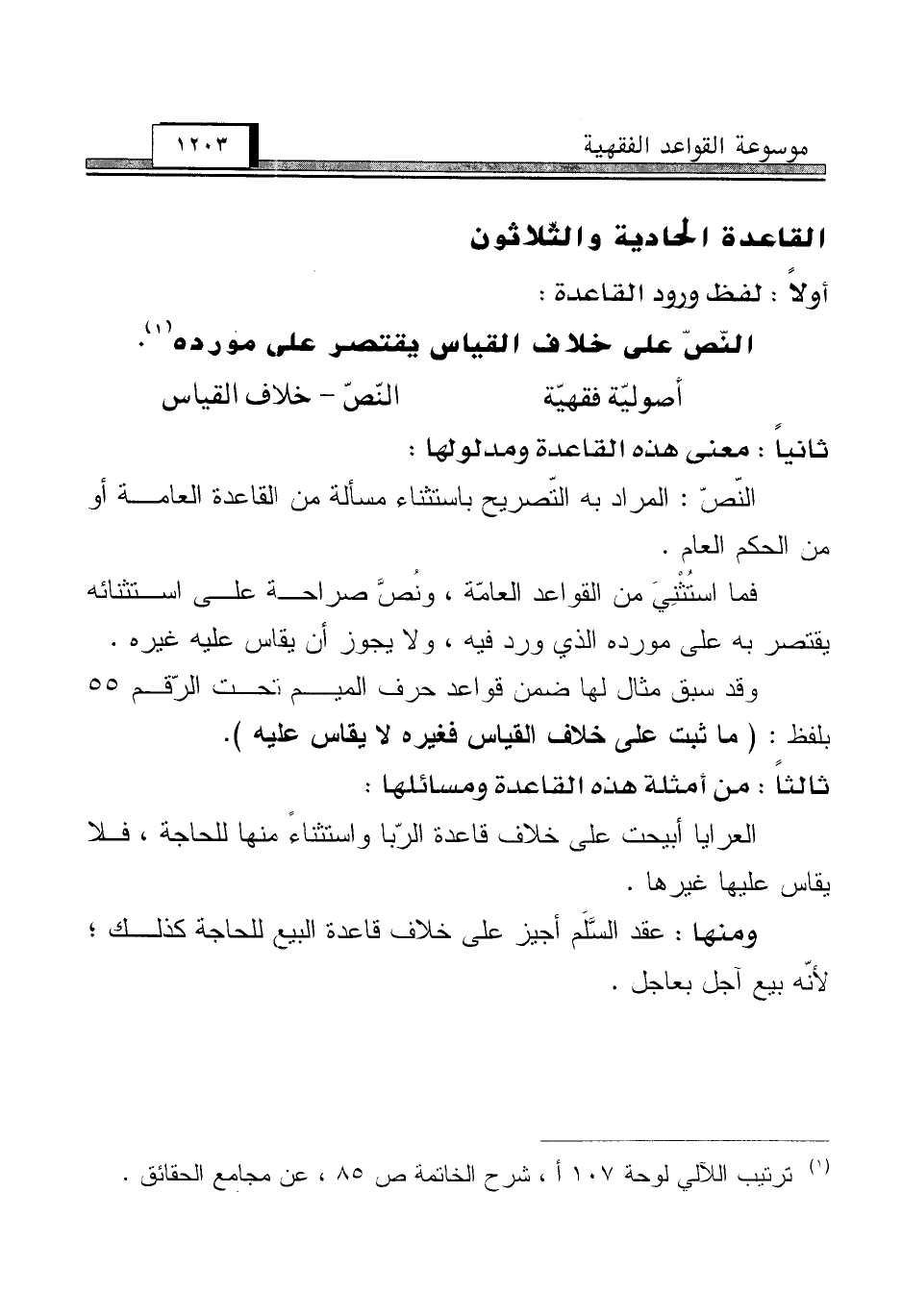 القاعدة الحادية والثّلاثون [النّصّ - خلاف القياس]