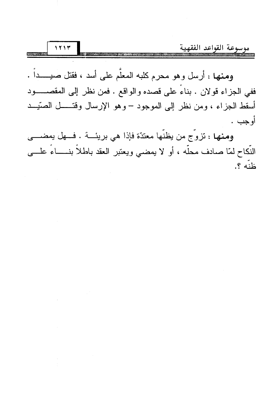 ومنها: أرسل وهو محرم كلبه المعلَّم على أسد، فقتل صيداً. ففي الجزاء قولان. بناءً على قصده والواقع. فمن نظر إلى المقصود أسقط الجزاء، ومن نظر إلى الموجود - وهو الإرسال وقتل الصّيد أوجب.