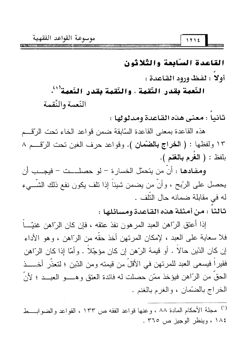 (¬1) مجلة الأحكام المادة 88، وعنها قواعد الفقه ص 133، القواعد والضوابط 184، وينظر الوجيز ص 365.