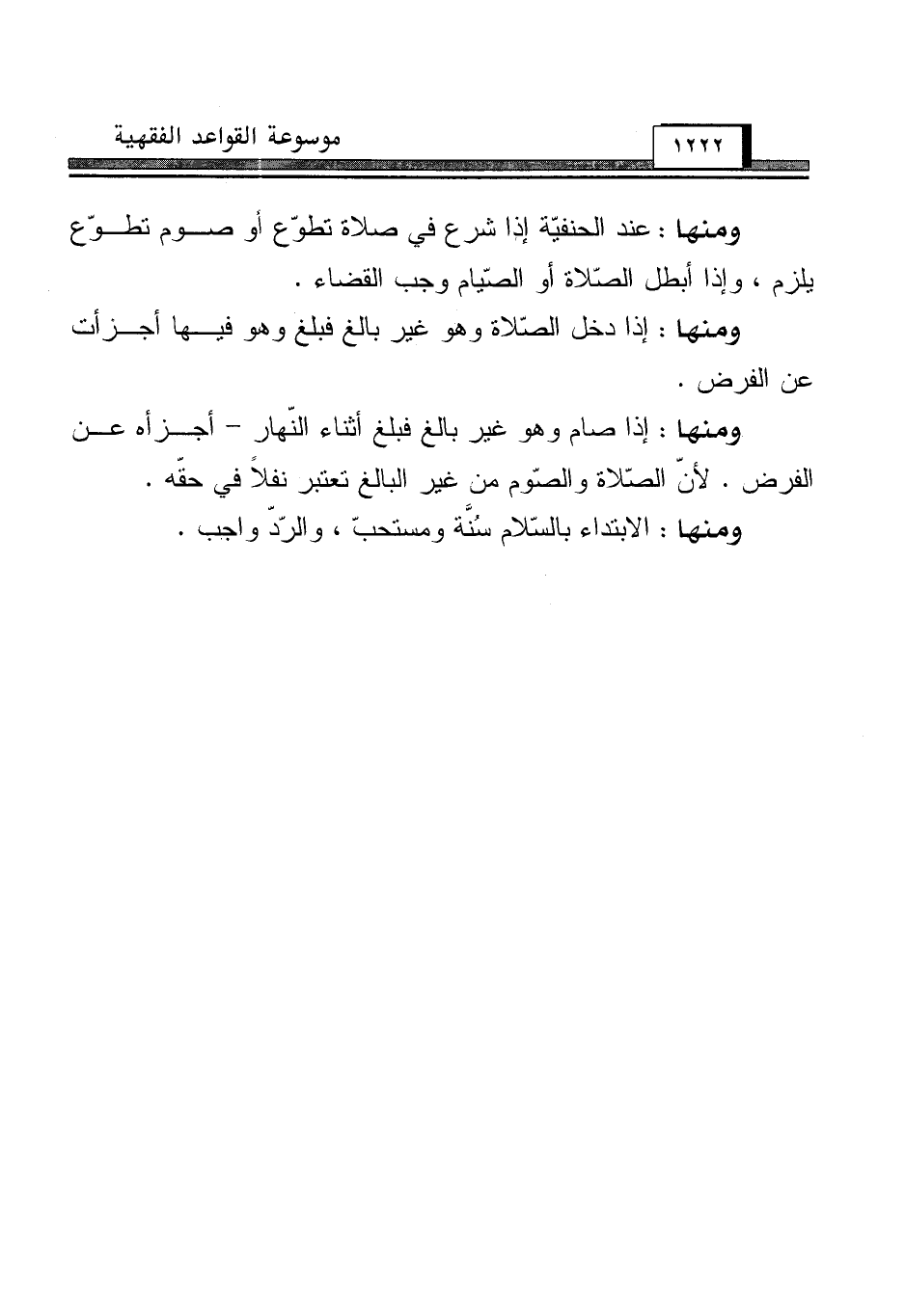 ومنها: إذا صام وهو غير بالغ فبلغ أثناء النّهار - أجزأه عن الفرض. لأنّ الصّلاة والصّوم من غير البالغ تعتبر نفلاً في حقّه.