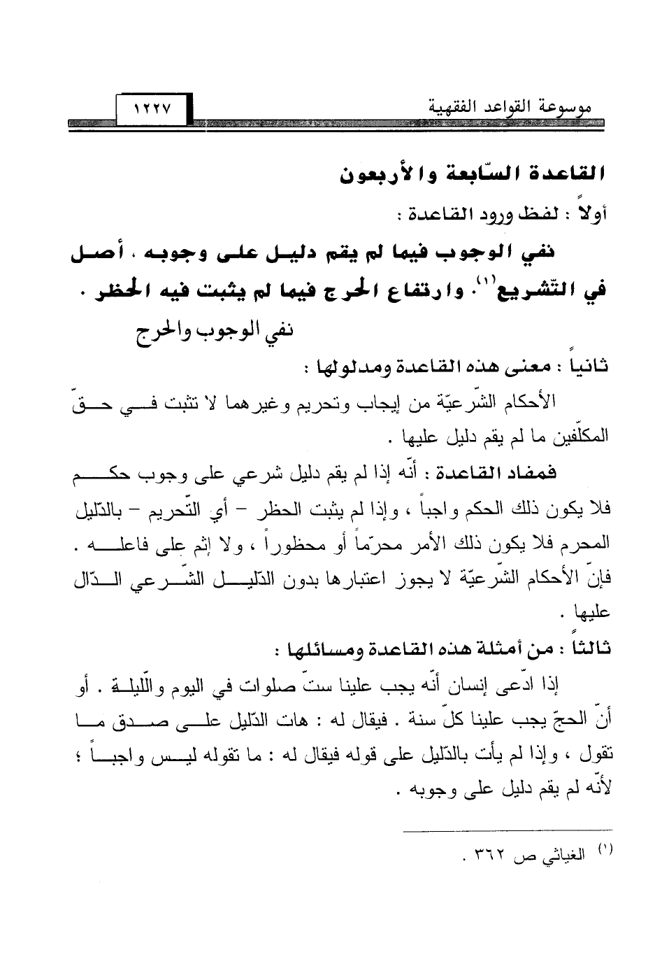 القاعدة السّابعة والأربعون [نفي الوجوب والحرج]