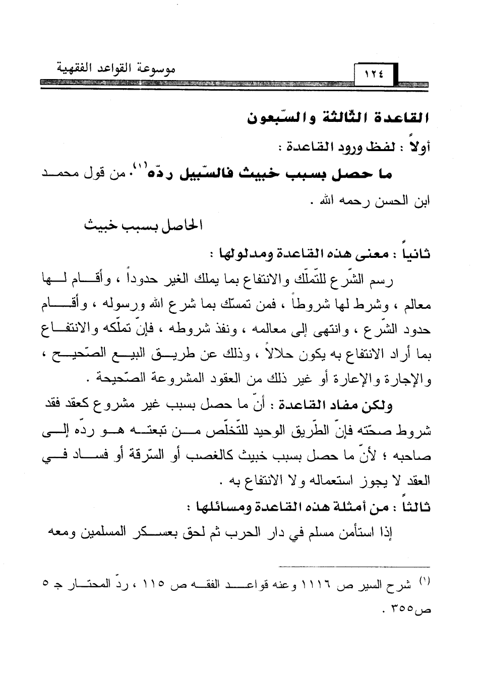 (¬1) شرح السير ص 1116 وعنه قواعد الفقه ص 115، ردّ المحتار جـ 5 ص 355.