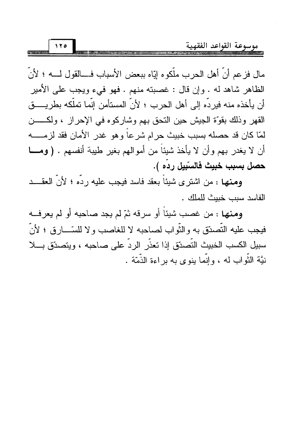 ومنها: من اشترى شيئاً بعقد فاسد فيجب عليه ردّه؛ لأنّ العقد الفاسد سبب خبيث للملك.