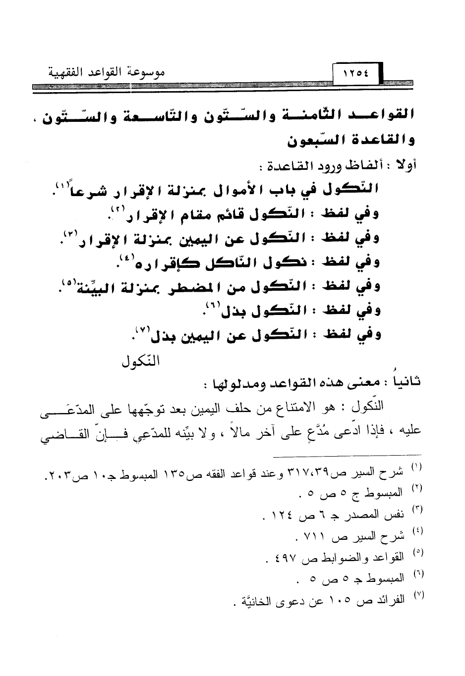 القواعد الثّامنة والسّتّون والتّاسعة والسّتّون والقاعدة السّبعون [النّكول]