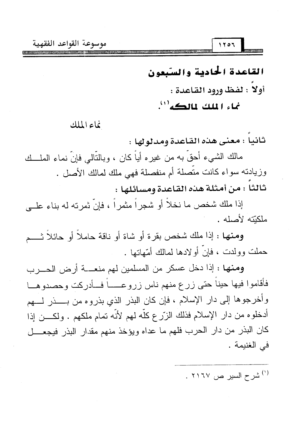 مالك الشيء أحقّ به من غيره أياً كان، وبالتّالي، فإنّ نماء الملك وزيادته سواء كانت متّصلة أم منفصلة فهي ملك لمالك الأصل.