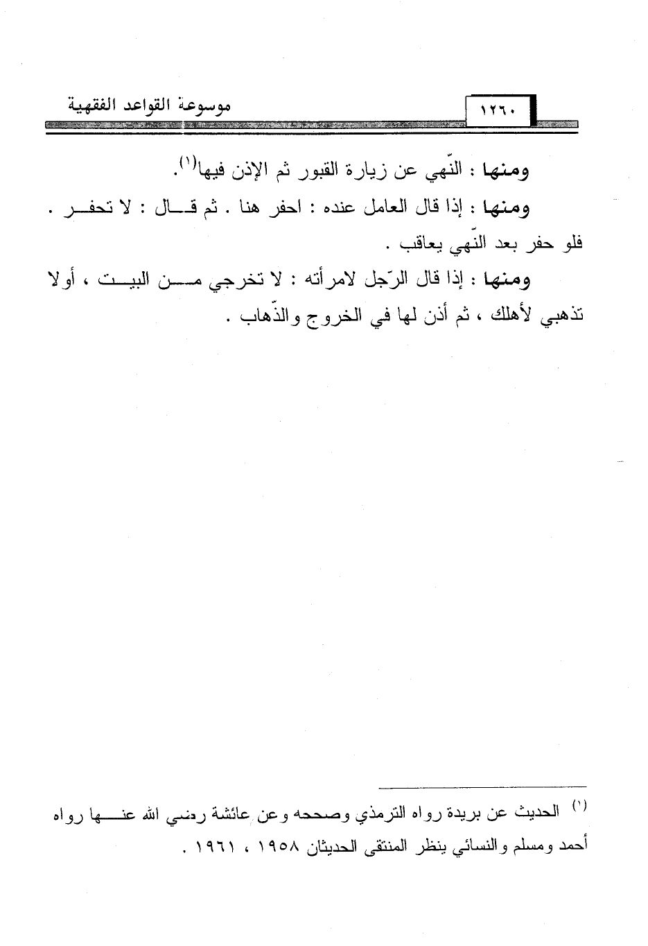 (¬1) الحديث عن بريدة رواه الترمذي وصححه وعن عائشة رضي الله عنها رواه أحمد ومسلم والنسائي ينظر المنتقى الحديثان 1958، 1961.