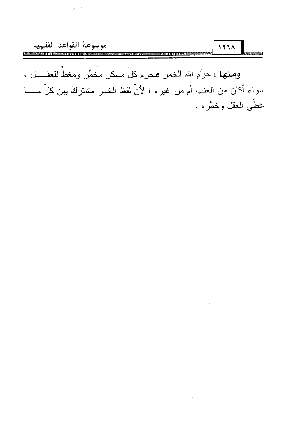 ومنها: حرَّم الله الخمر فيحرم كلّ مسكر مخمِّر ومغطٍّ للعقل، سواء أكان من العنب أم من غيره؛ لأنّ لفظ الخمر مشترك بين كلّ ما غطّى العقل وخمَّره.