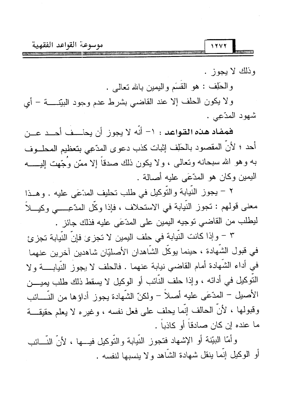 1 - أنّه لا يجوز أن يحلف أحد عن أحد؛ لأنّ المقصود بالحَلِف إثبات كذب دعوى المدّعِي بتعظيم المحلوف به وهو الله سبحانه وتعالى، ولا يكون ذلك صدقاً إلا ممّن وجّهت إليه اليمين وكان هو المدّعَى عليه أصالة.