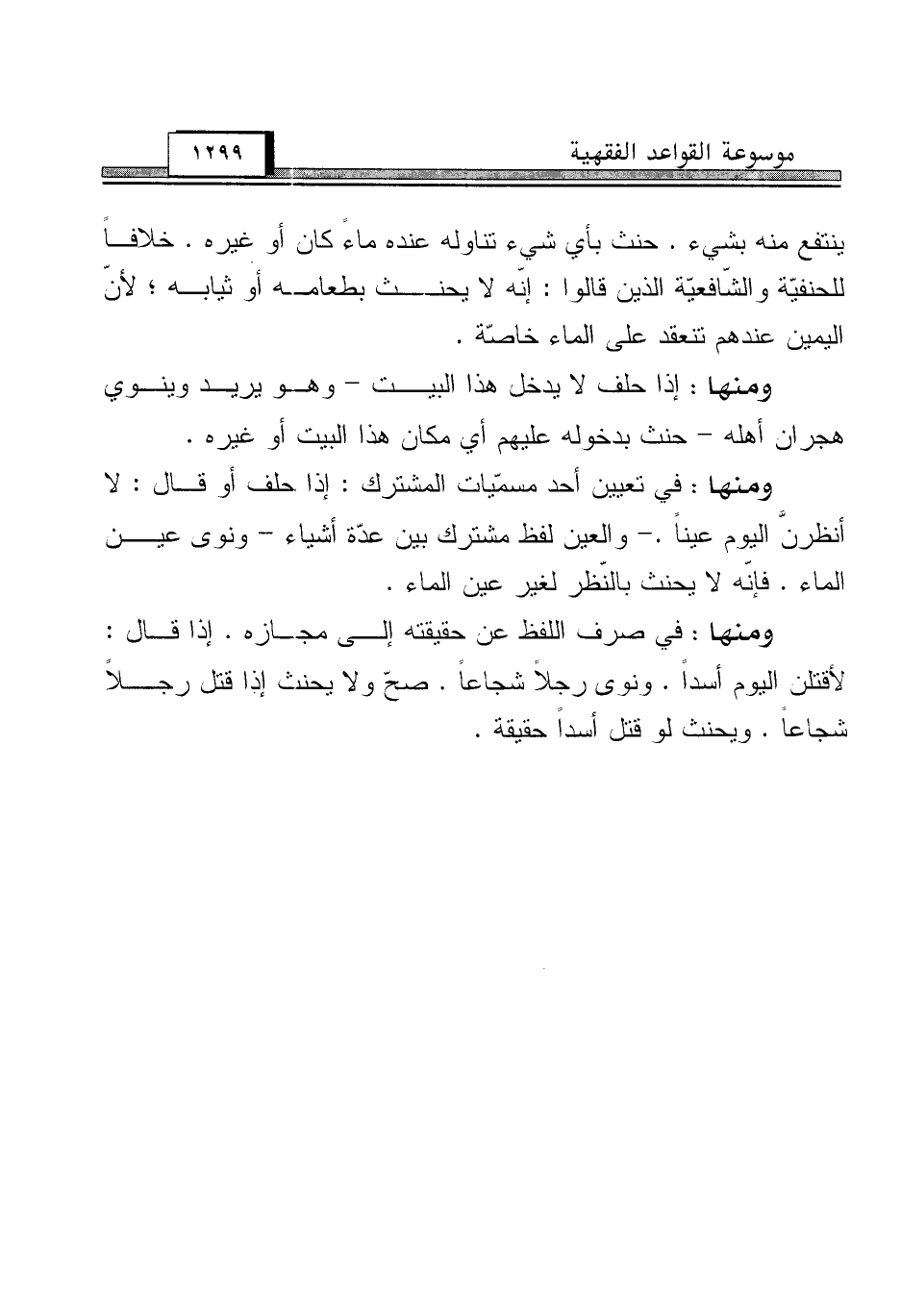 ينتفع منه بشيء. حنث بأي شيء تناوله عنده ماءً كان أو غيره. خلافاً للحنفيّة والشّافعيّة الذين قالوا: إنّه لا يحنث بطعامه أو ثيابه؛ لأنّ اليمين عندهم تنعقد على الماء خاصّة.