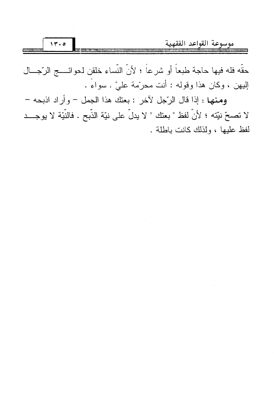 ومنها: إذا قال الرّجل لآخر: بعتك هذا الجمل - وأراد اذبحه - لا تصحّ نيّته؛ لأنّ لفظ "بعتك" لا يدلّ على نيّة الذّبح. فالنّيّة لا يوجد لفظ عليها، ولذلك كانت باطلة.