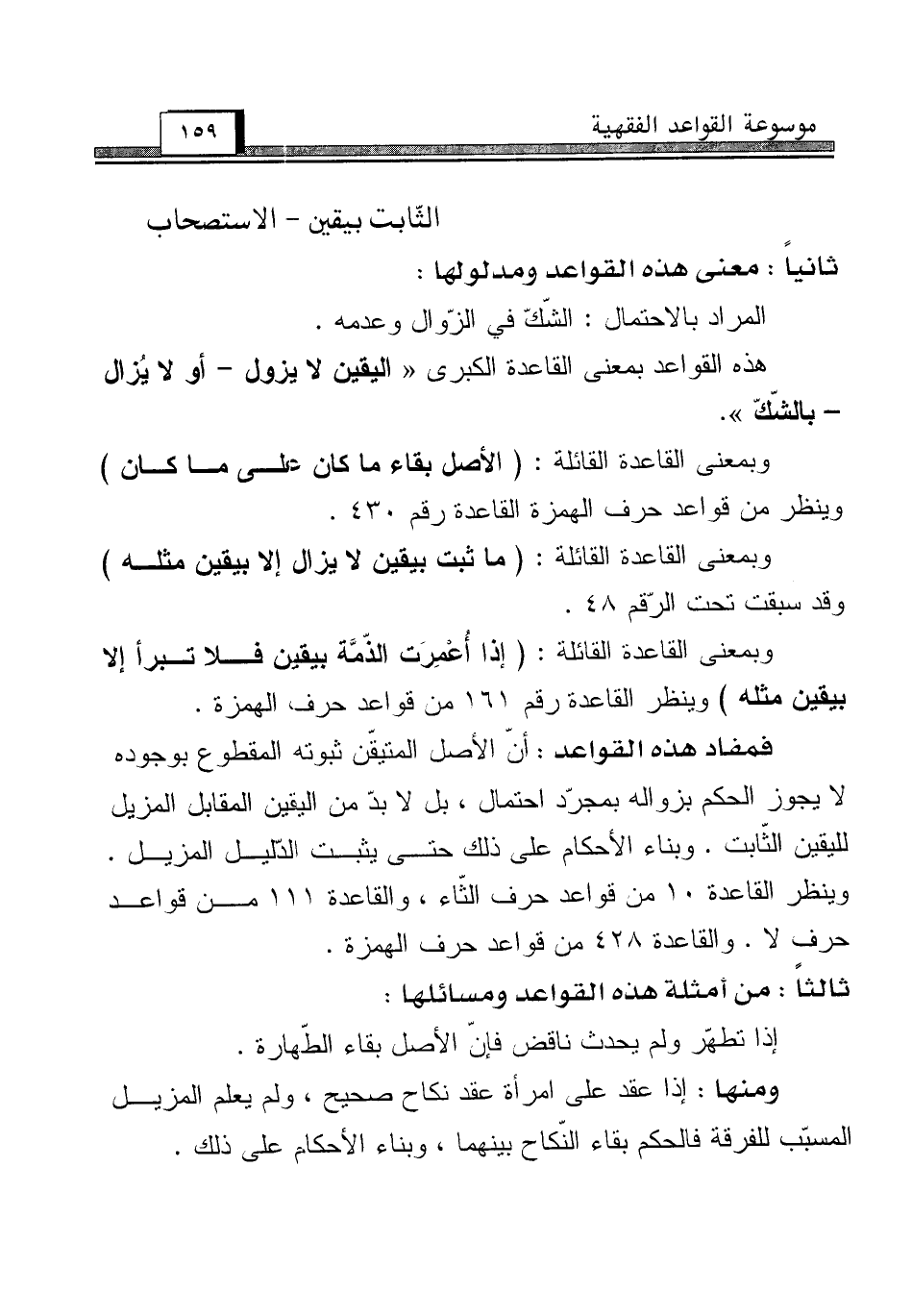 وبمعنى القاعدة القائلة: (الأصل بقاء ما كان على ما كان) وينظر من قواعد حرف الهمزة القاعدة رقم 430.