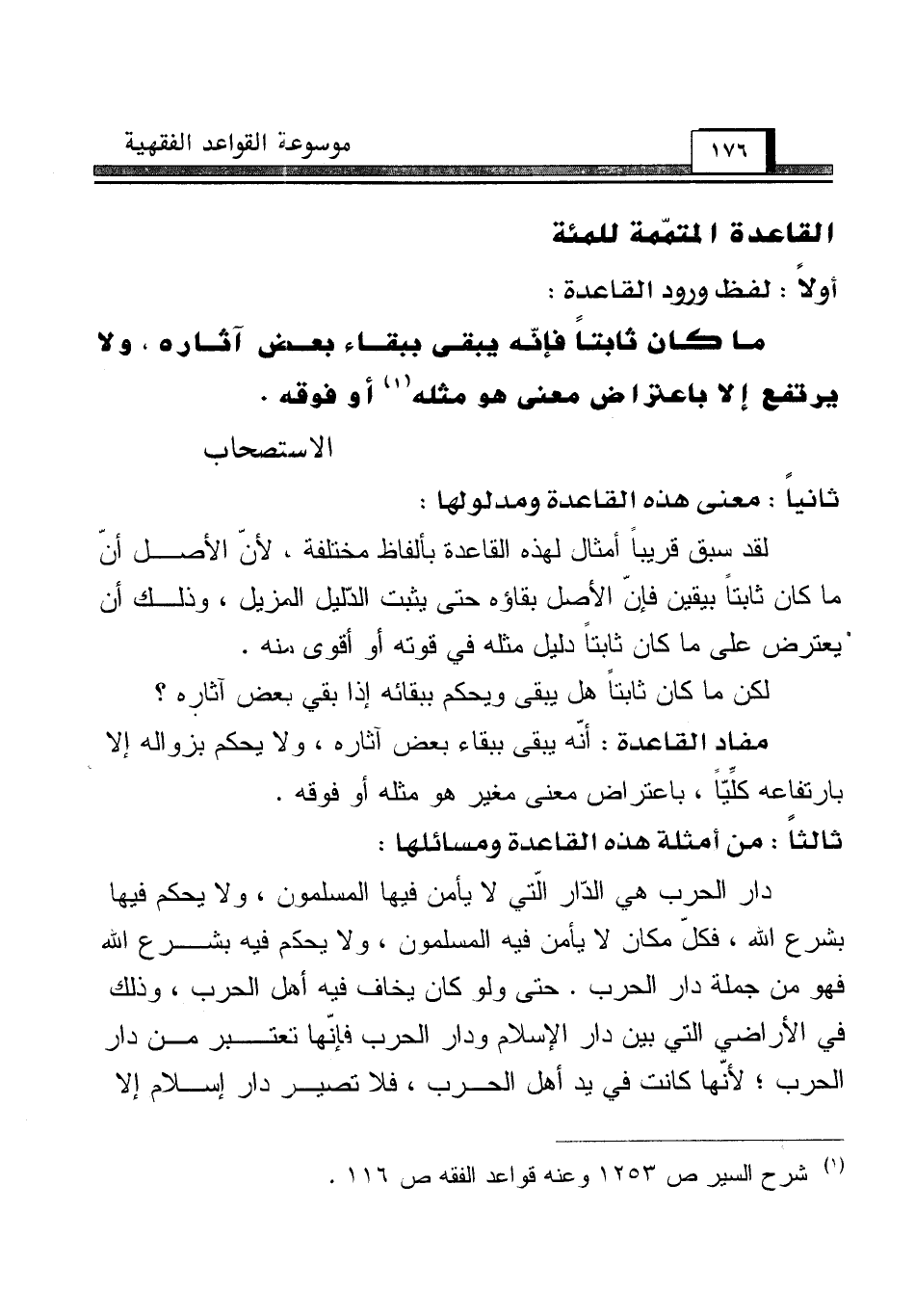 (¬1) شرح السير ص 1253 وعنه قواعد الفقه ص 116.