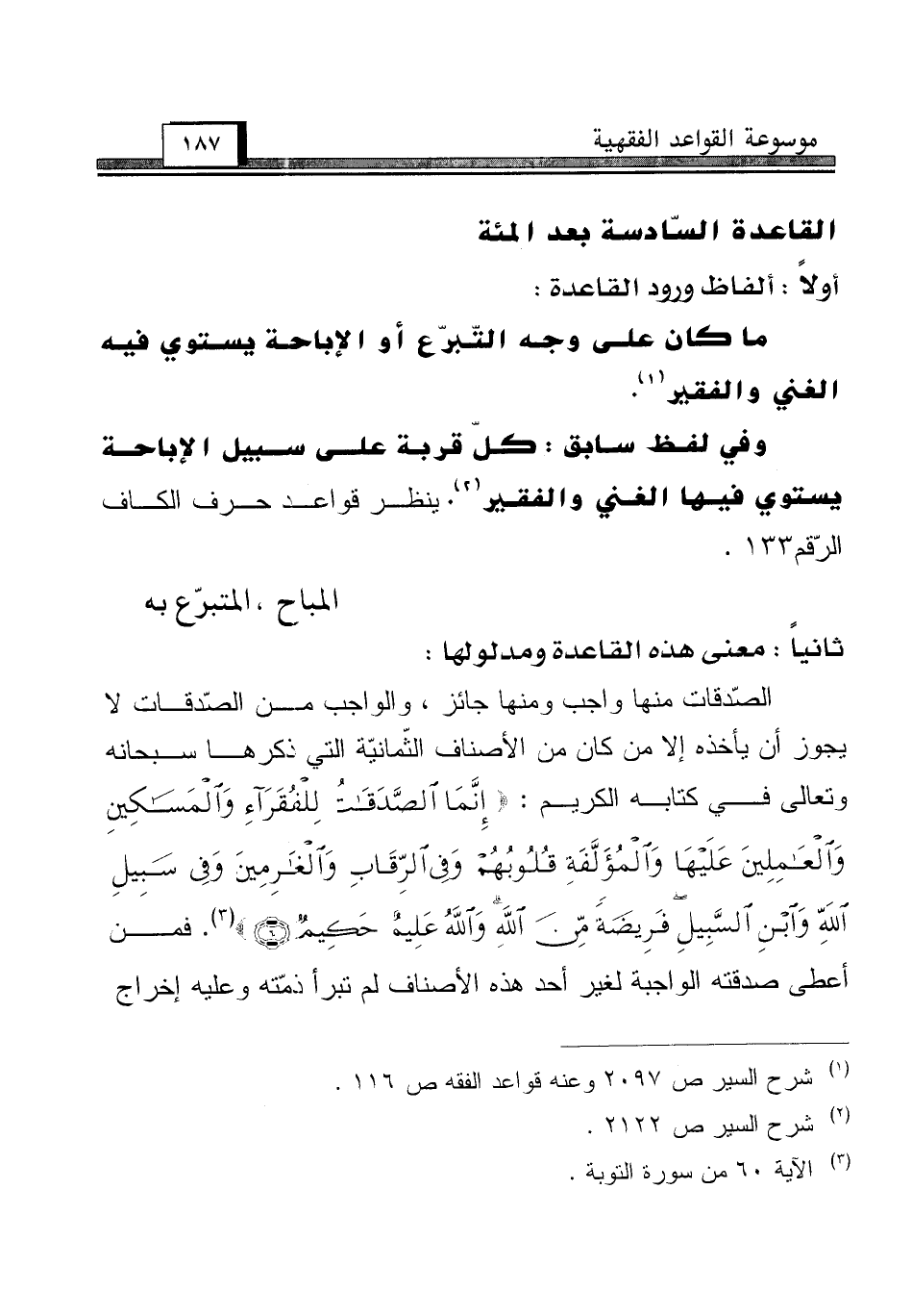وفي لفظ سابق: كلّ قربة على سبيل الإباحة يستوي فيها الغني والفقير (¬2). ينظر قواعد حرف الكاف الرّقم 133.