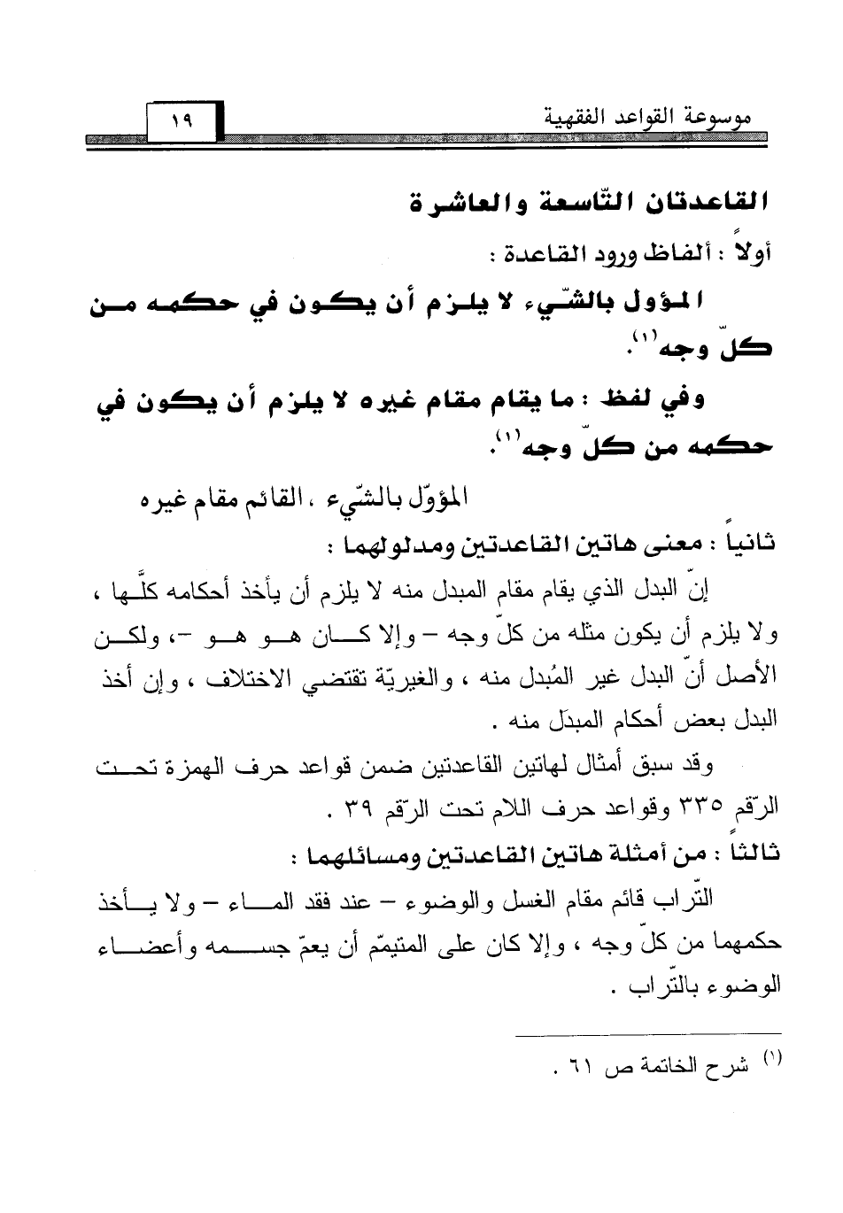 القاعدتان التّاسعة والعاشرة [المؤوّل بالشّيء، القائم مقام غيره]