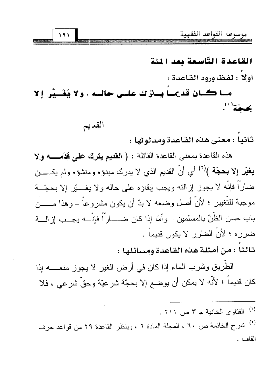 (¬2) شرح الخاتمة ص 60، المجلة المادة 6، وينظر القاعدة 29 من قواعد حرف القاف.