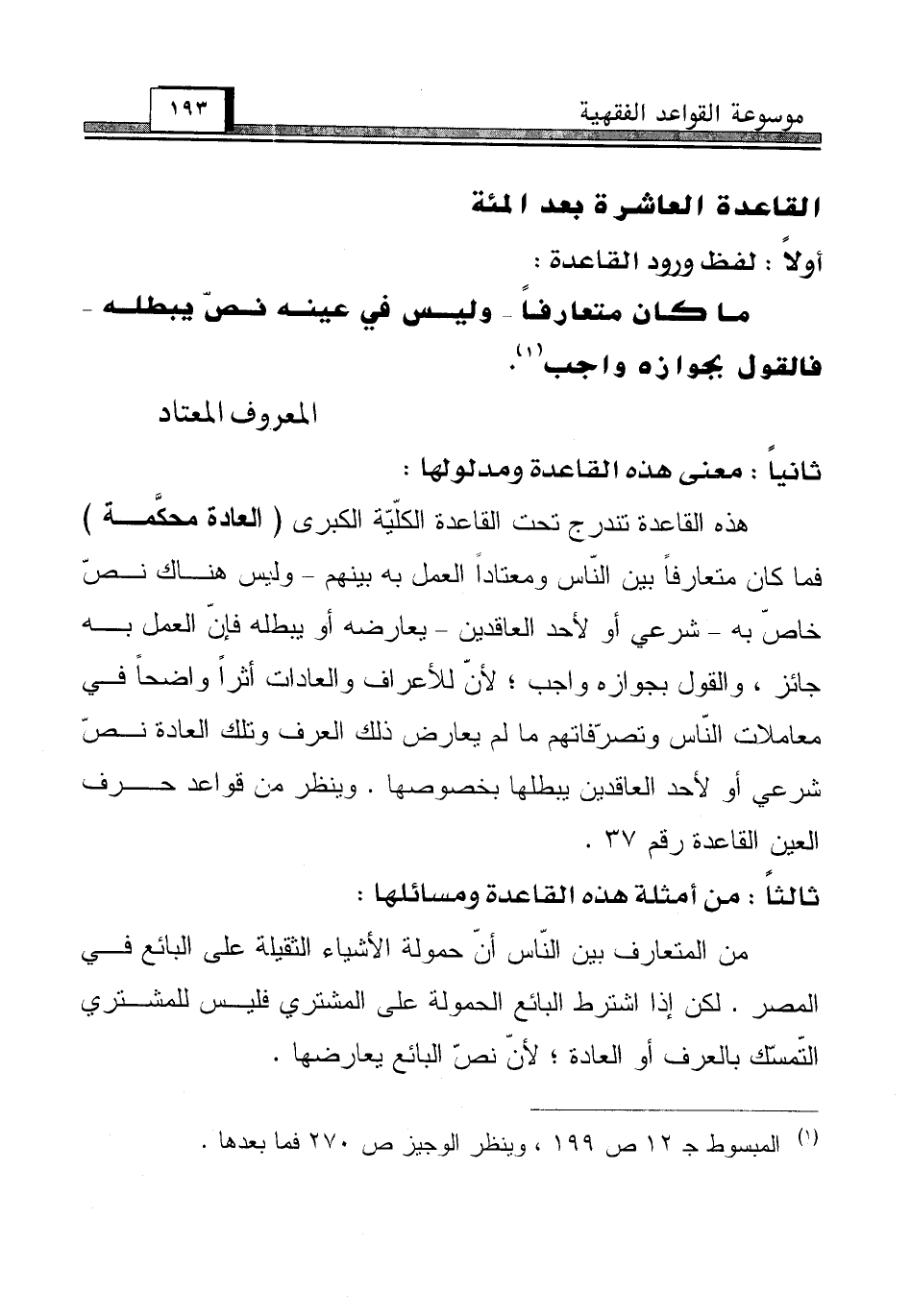 القاعدة العاشرة بعد المئة [المعروف المعتاد]