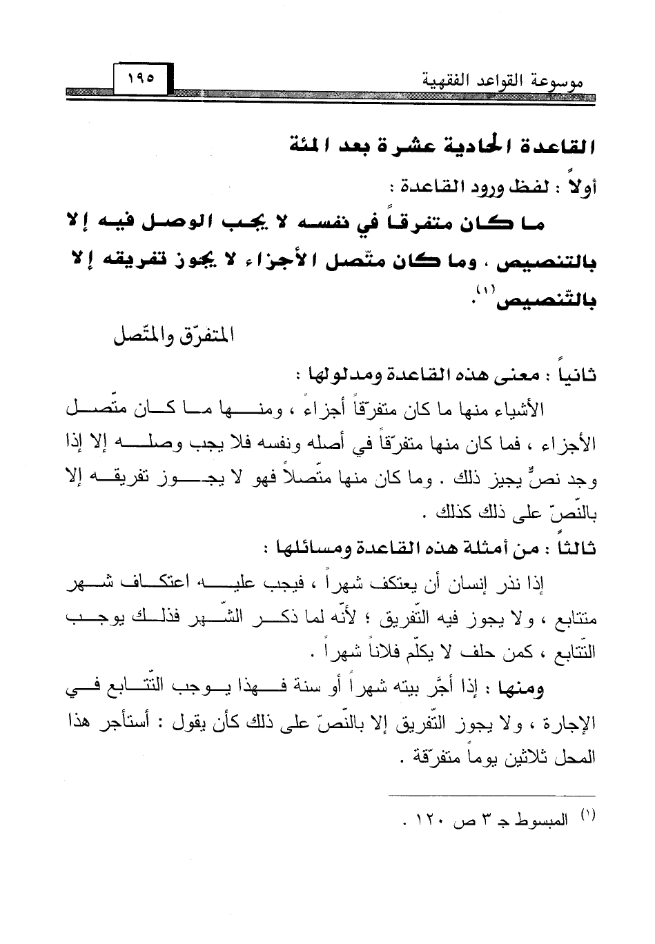القاعدة الحادية عشرة بعد المئة [المتفرّق والمتّصل]