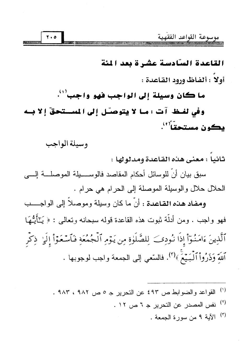 القاعدة السّادسة عشرة بعد المئة [وسيلة الواجب]