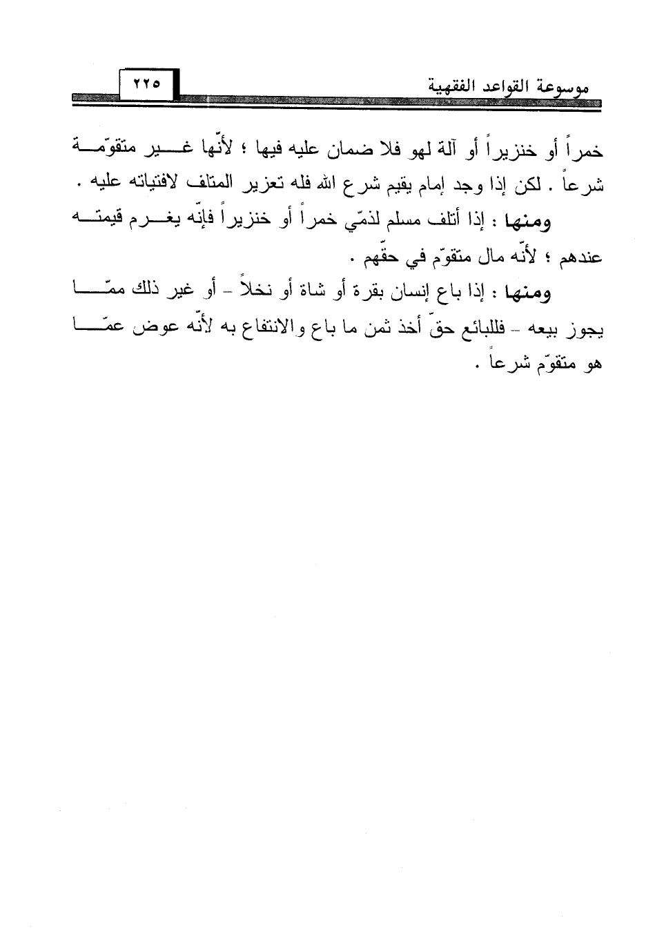 ومنها: إذا أتلف مسلم لذمّي خمراً أو خنزيراً فإنّه يغرم قيمته عندهم؛ لأنّه مال متقوّم في حقّهم.