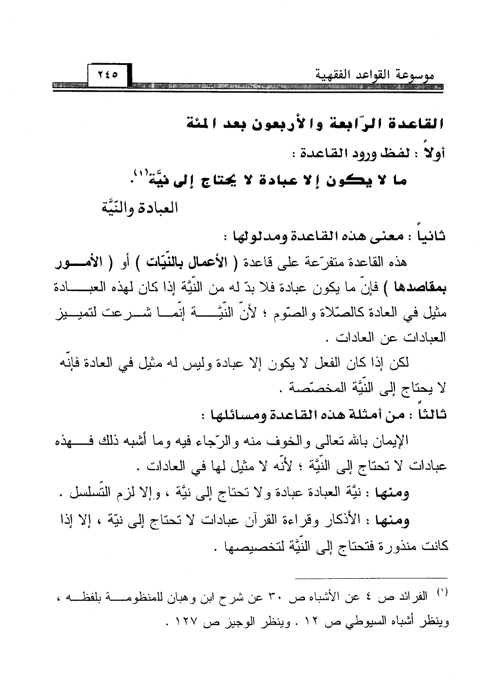 (¬1) الفرائد ص 4 عن الأشباه ص 30 على شرح ابن وهبان للمنظومة بلفظه، وينظر أشباه السيوطي ص 12. وينظر الوجيز ص 127.