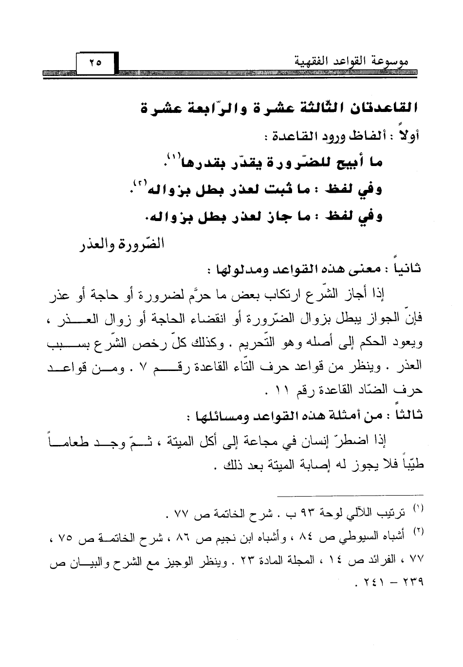 (¬2) أشباه السيوطي ص 84، وأشباه ابن نجيم ص 86، شرح الخاتمة ص 75، 77، الفرائد ص 14، المجلة المادة 23. وينظر الوجيز مع الشرح والبيان ص 239 - 241.