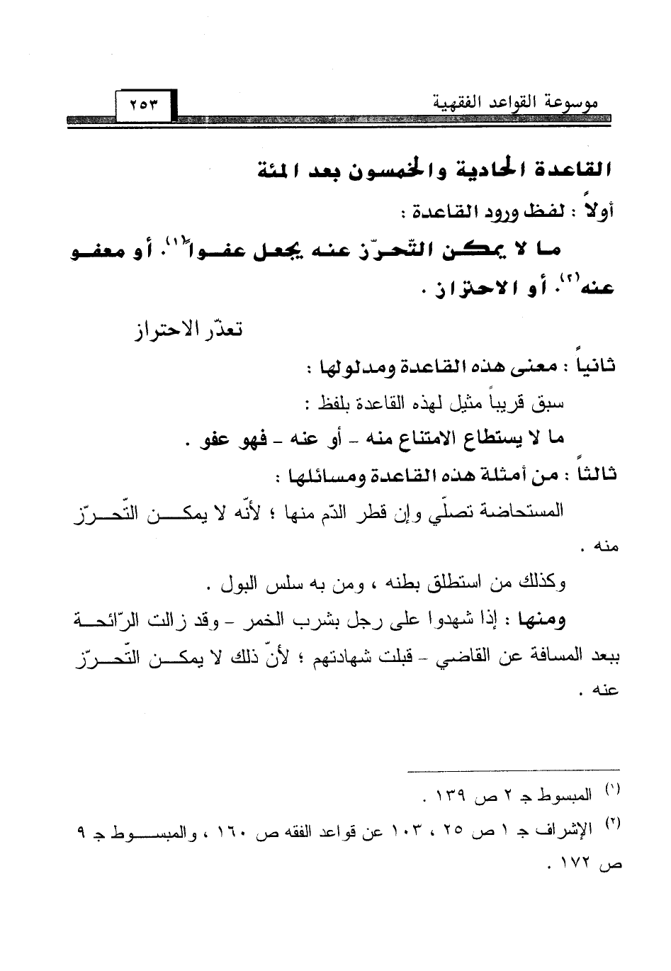 (¬2) الإشراف جـ 1 ص 25، 103 عن قواعد الفقه ص 160، والمبسوط جـ 9 ص 172.